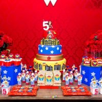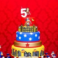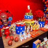 Decoração Personalizada: Equipe de Party Designers e Event Planners Mundo Kids. Tema: A Mulher Maravilha.