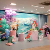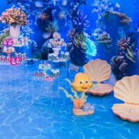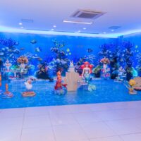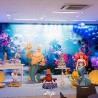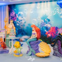 Decoração: Equipe de Party Designers e Event Planners do Mundo Kids. Tema: Ariel. A Pequena Sereia. Fundo do Mar. Várias montagens.