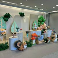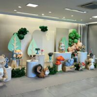 O tema Bosque Baby traz toda a magia da natureza para a festa, com tons suaves, bichinhos encantadores e elementos que remetem a um cenário de conto de fadas. Ursinhos, raposas, coelhinhos e esquilos compõem um ambiente acolhedor e cheio de ternura.