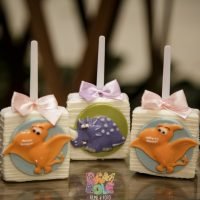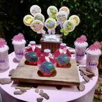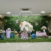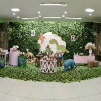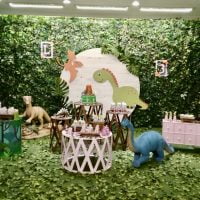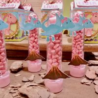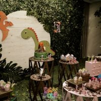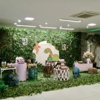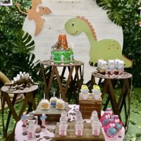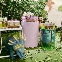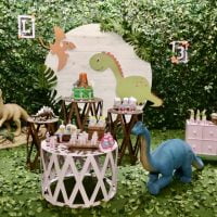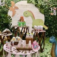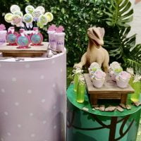 Decoração: Equipe de Party Designers e Event Planners do Mundo Kids. Tema:Dinossauro Baby para Meninas. Várias montagens.