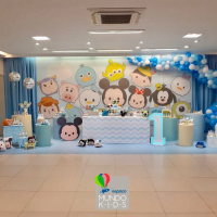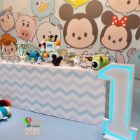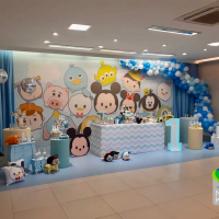 Decoração: Equipe de Party Designers e Event Planners do Mundo Kids. Tema: Disney Tsum Tsum. Várias montagens.