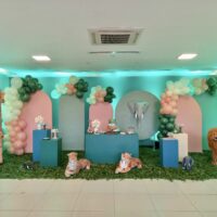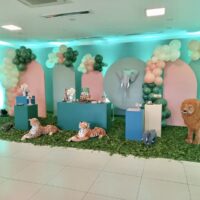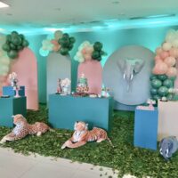 Decoração: Equipe de Party Designers e Event Planners do Mundo Kids. Tema: Jardim – Animais – Safari. Várias montagens.