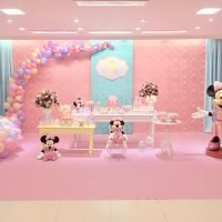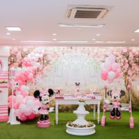 Decoração Personalizada: Equipe de Party Designers & Lux Event Planners do Mundo Kids. Tema: Minnie Rosa. Várias Montagens.