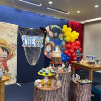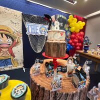 Tema: One Piece. Decoração Personalizada: Equipe do Mundo Kids. Várias montagens.