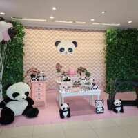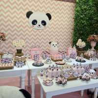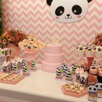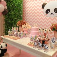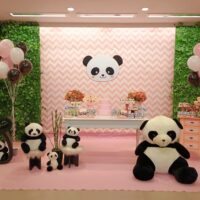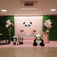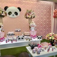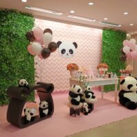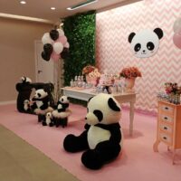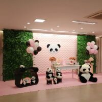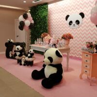 Decoração Personalizada: Equipe de Party Designers e Event Planners Mundo Kids. Tema: Urso Panda para Menina. Várias montagens.
