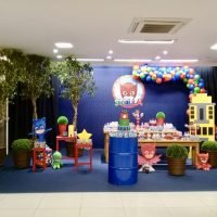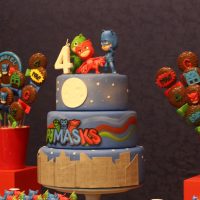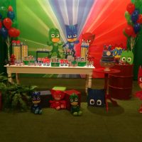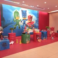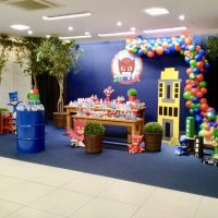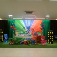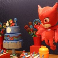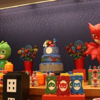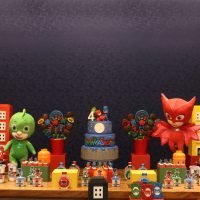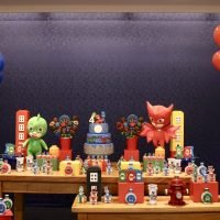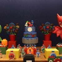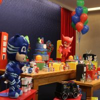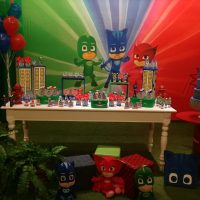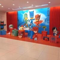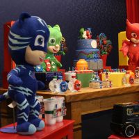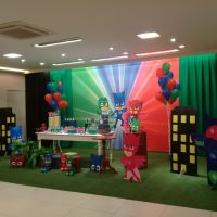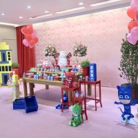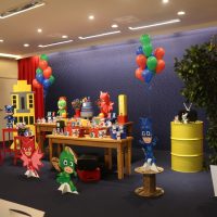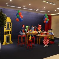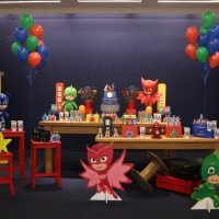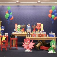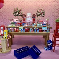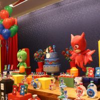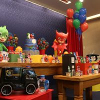 Decoração Personalizada: Equipe de Party Designers Mundo Kids. Tema: PJ Masks. Várias montagens.