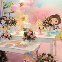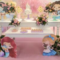 Decoração Personalizada: Equipe de Party Designers & Event Planners do Mundo Kids. Tema: Princesas Bebê. Várias Montagens.