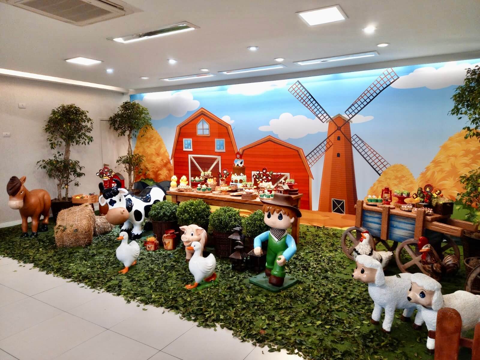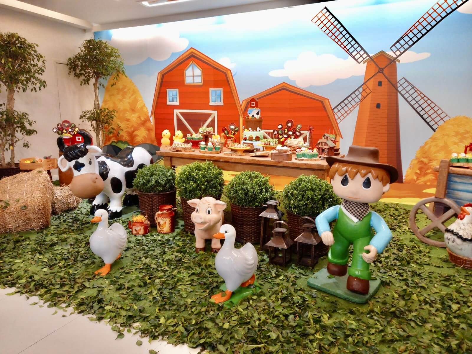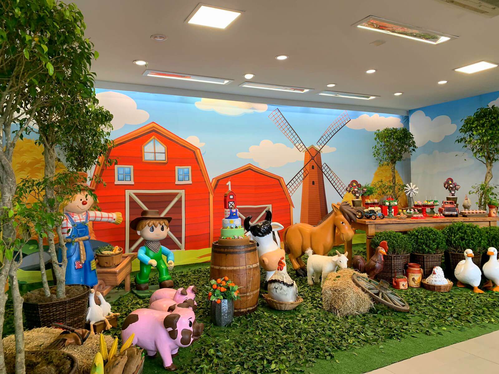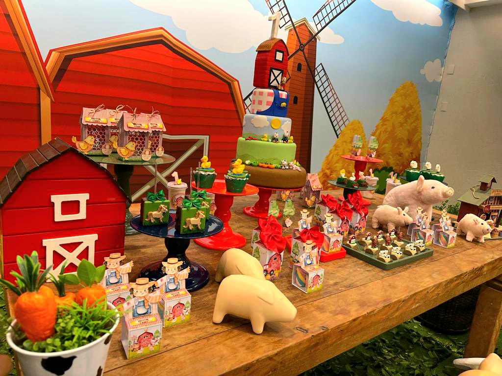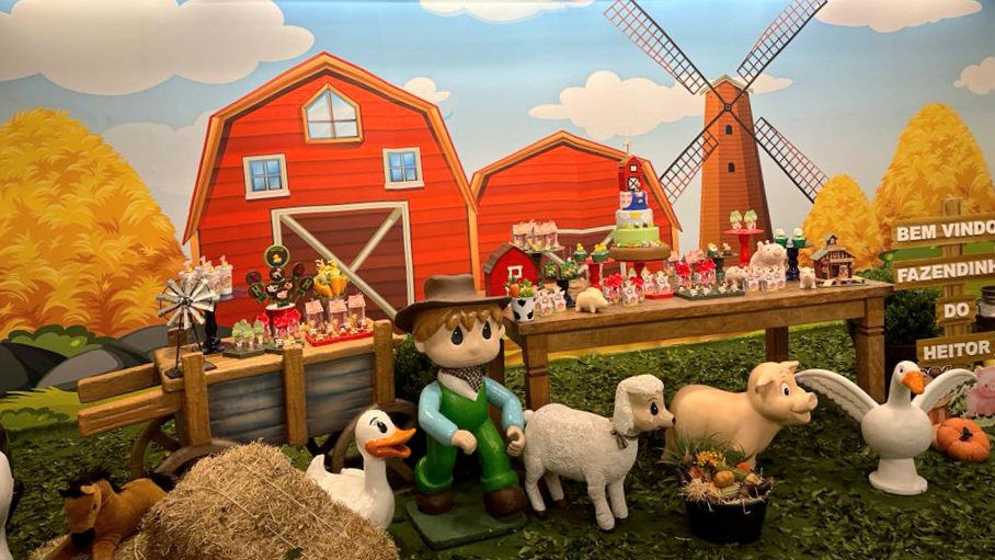 O tema Fazendinha é um dos mais queridos nas festas infantis, pois transforma o ambiente em um cenário cheio de cores, animais e alegria. Nossa equipe de Party Designers cria uma decoração lúdica e acolhedora, com celeiro, moinho, carroça, fardos de feno e personagens que encantam crianças e adultos.