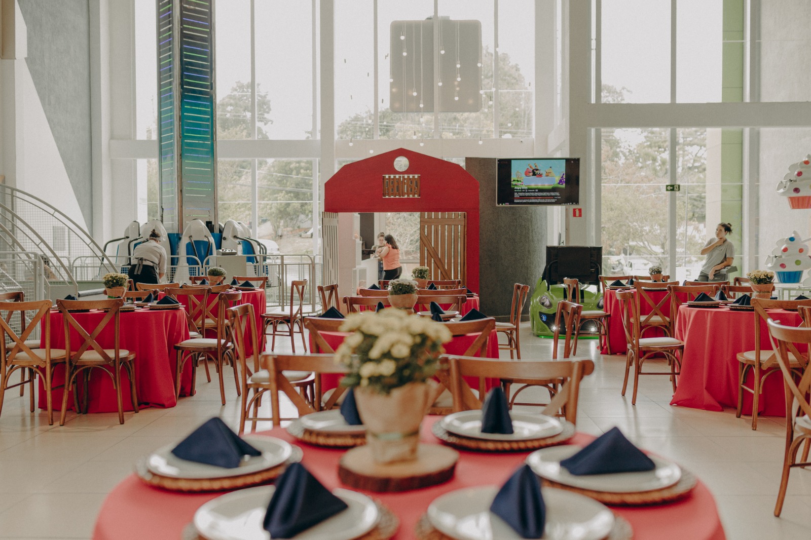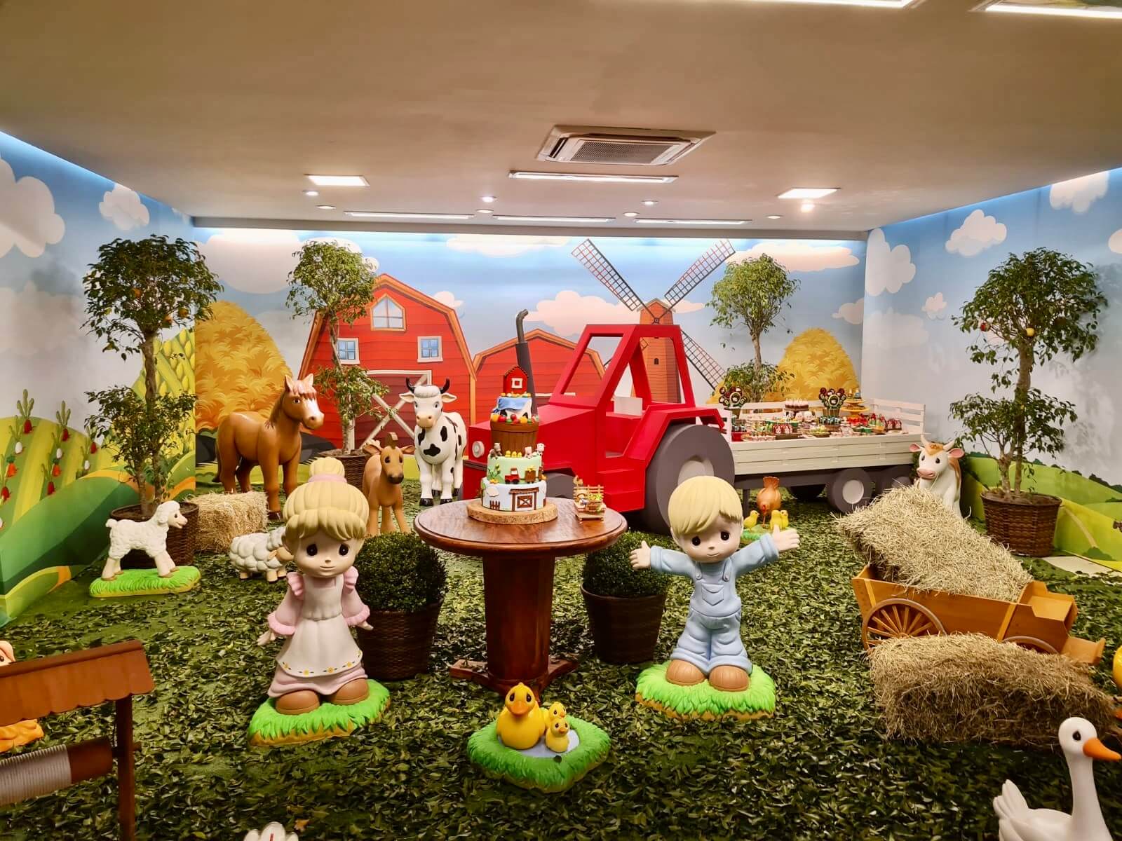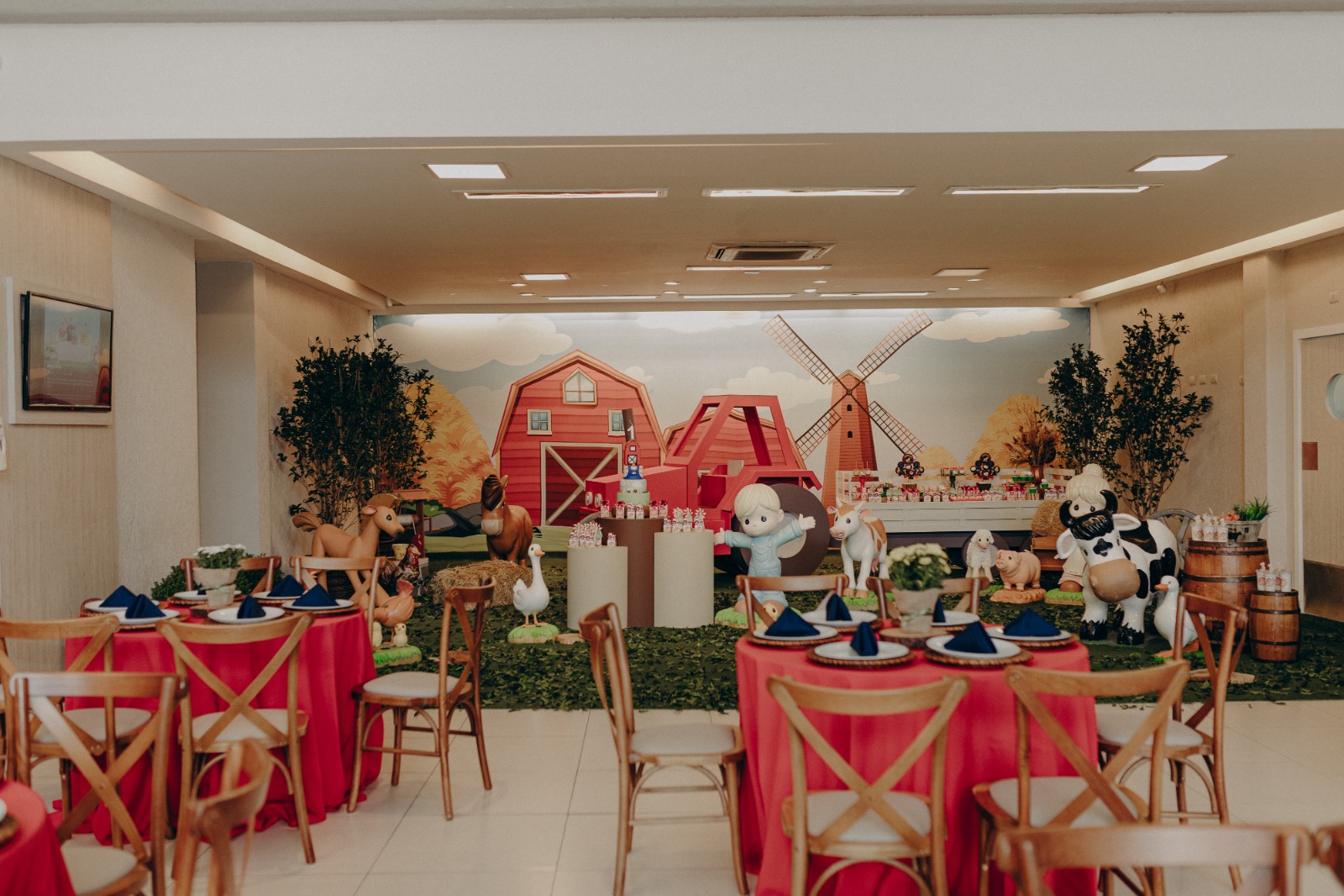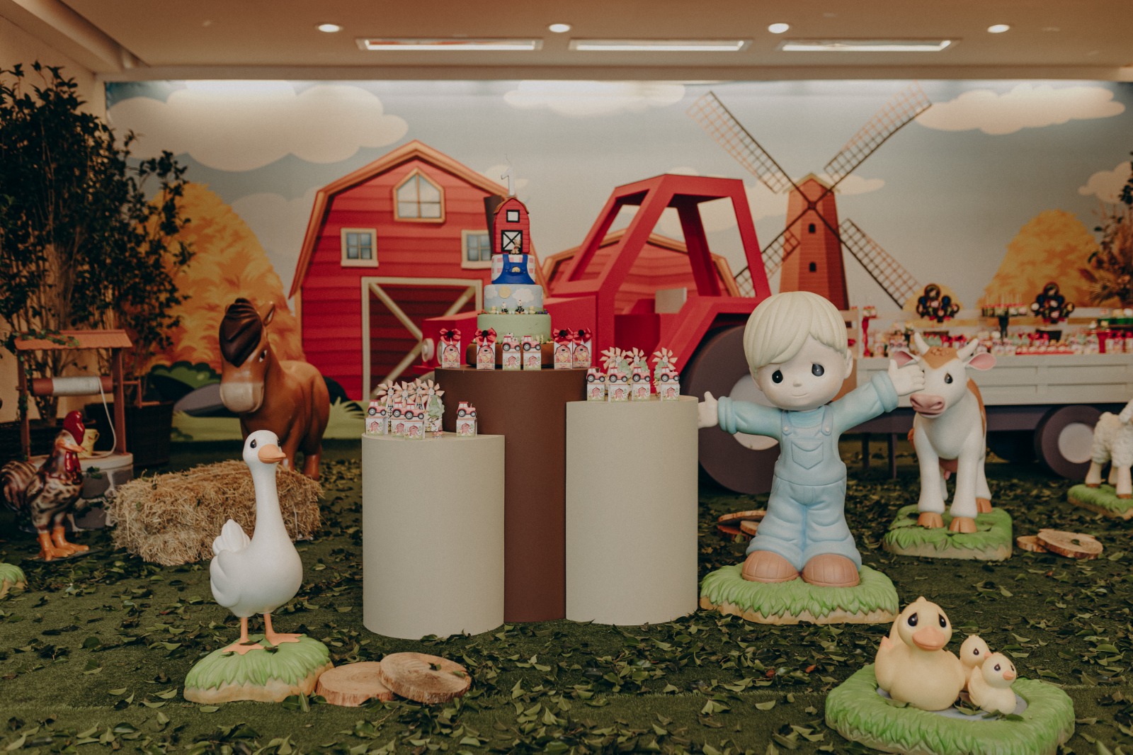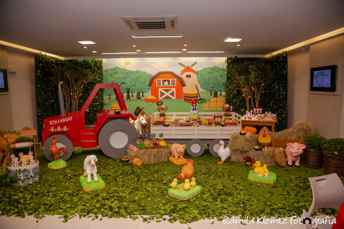 O tema Fazendinha é um dos mais queridos nas festas infantis, pois transforma o ambiente em um cenário cheio de cores, animais e alegria. Nossa equipe de Party Designers cria uma decoração lúdica e acolhedora, com celeiro, moinho, carroça, fardos de feno e personagens que encantam crianças e adultos.