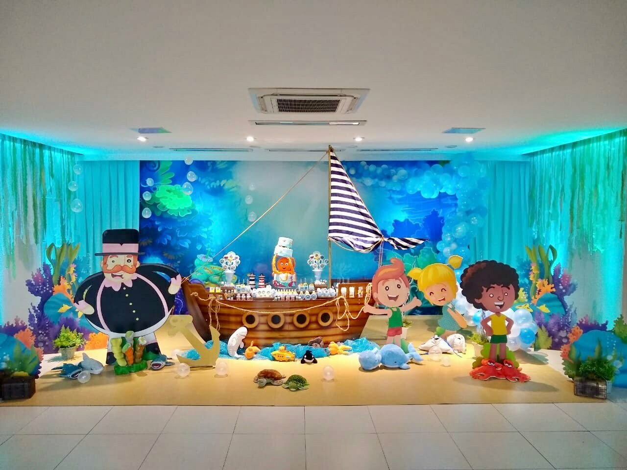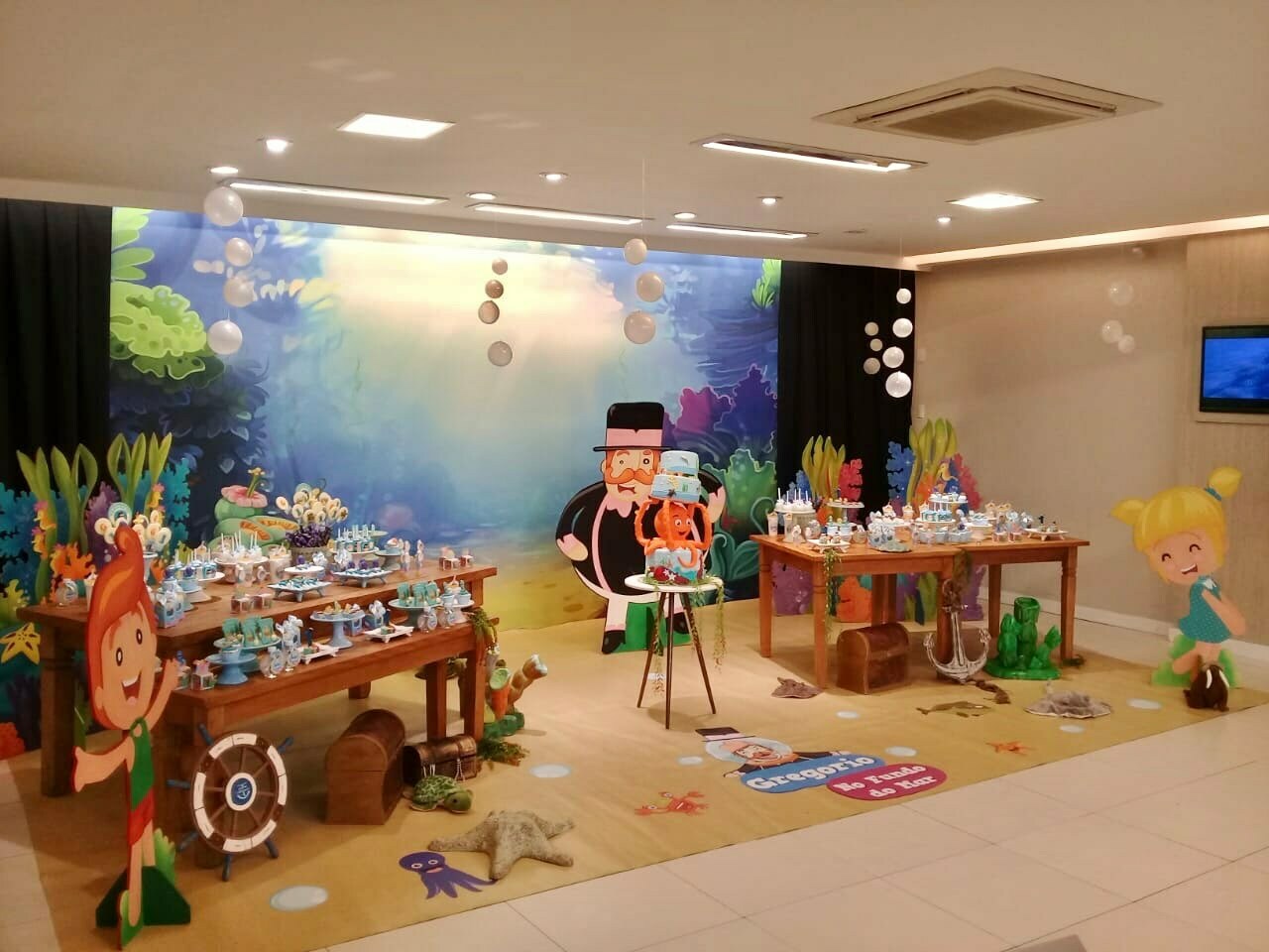São várias possibilidades de montagem, que vão desde produções delicadas e lúdicas até cenários completos com o Bita e sua turma em meio ao oceano. No Espaço Mundo Kids, você sonha uma festa… Nós entregamos um Mundo!