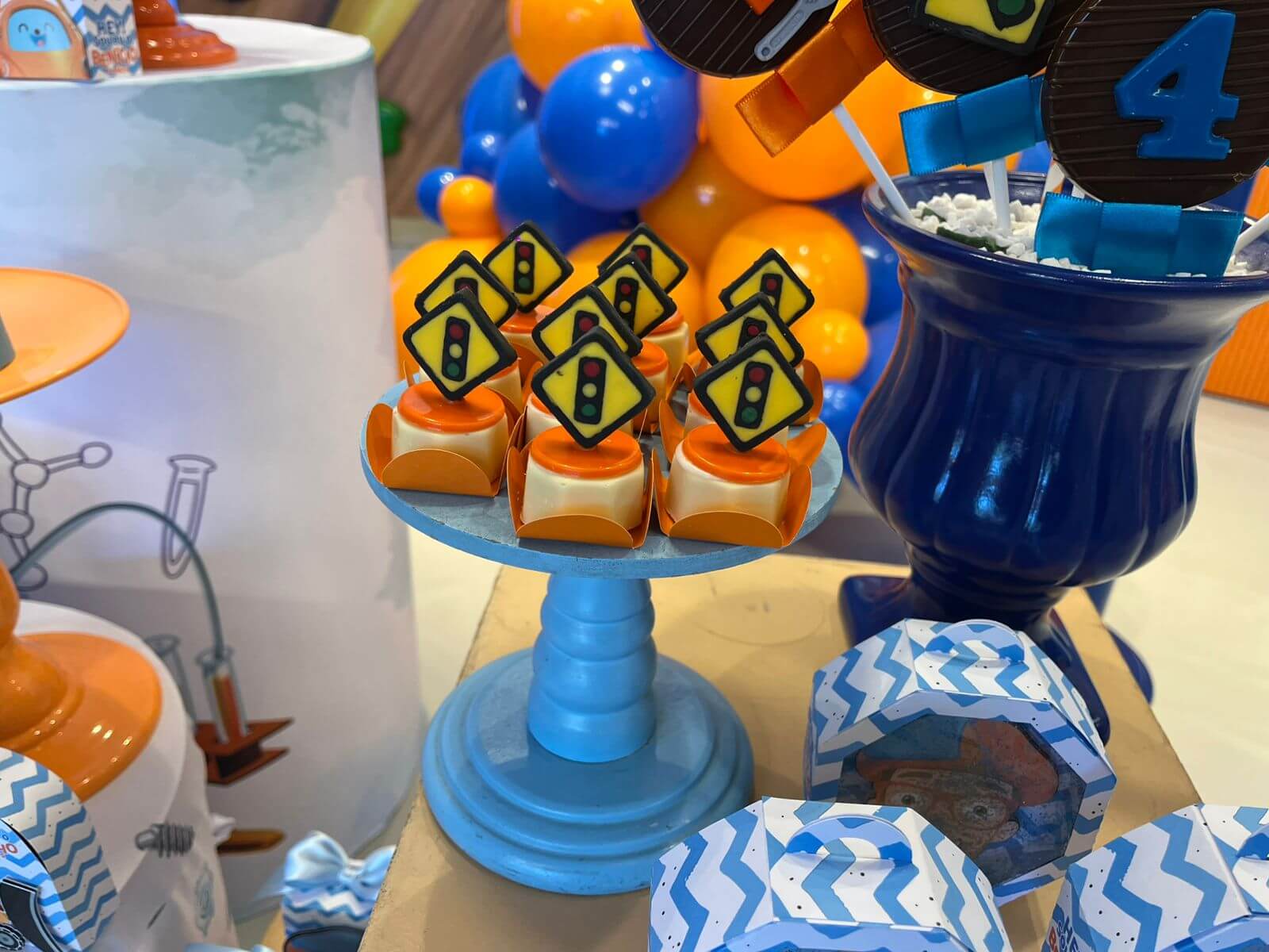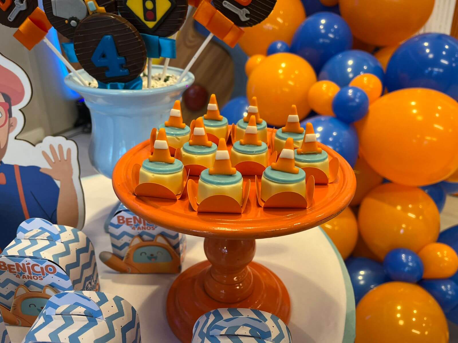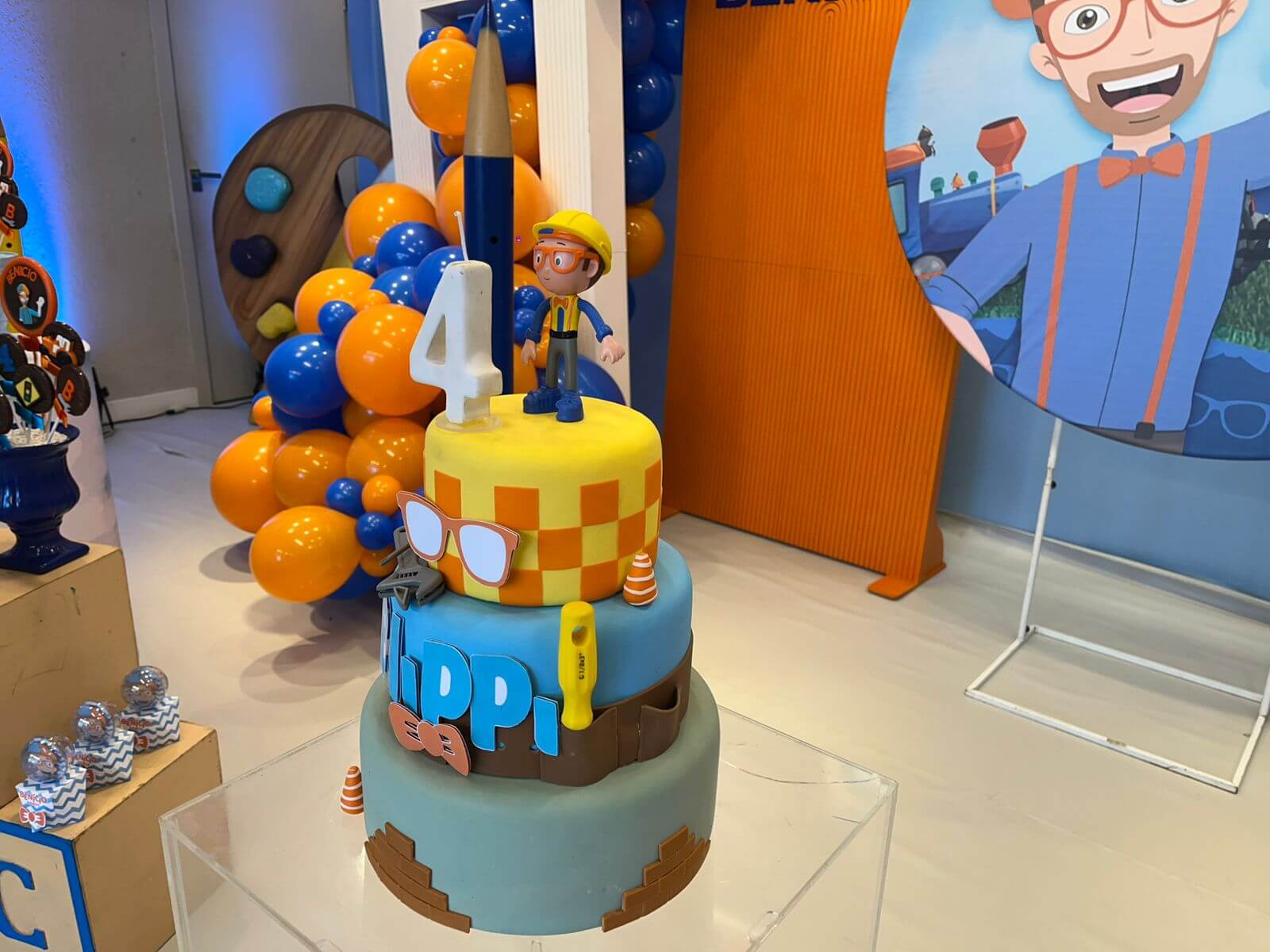 Com o tema Blippi, a diversão é garantida! Inspirada no personagem querido pelas crianças, essa decoração colorida e educativa estimula a curiosidade e o aprendizado por meio de um ambiente cheio de vida. Nossa equipe de Party Designers cria montagens vibrantes, com os tons marcantes de azul e laranja, e elementos que remetem ao universo do Blippi.