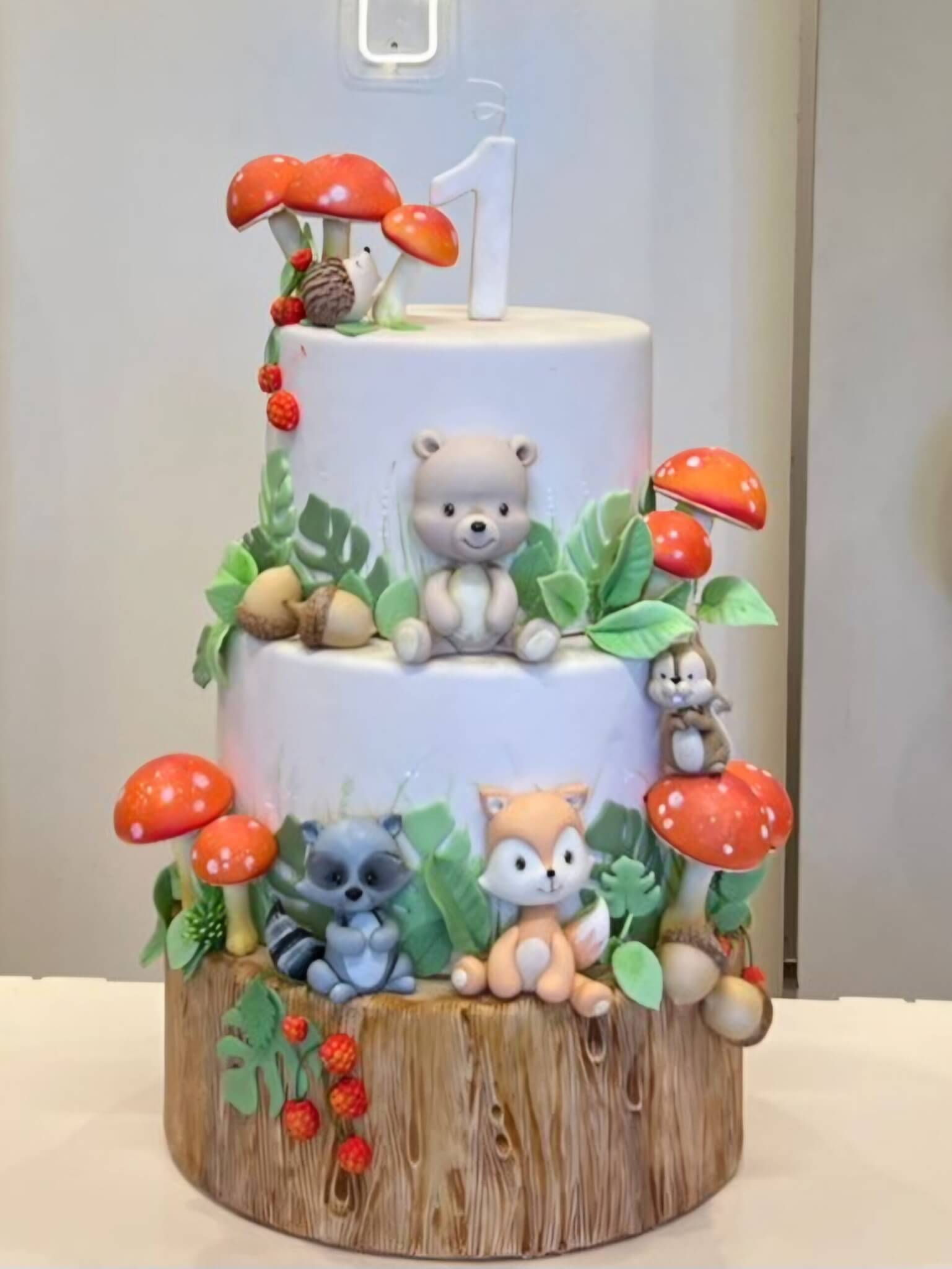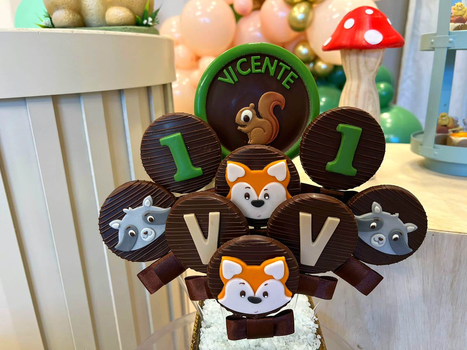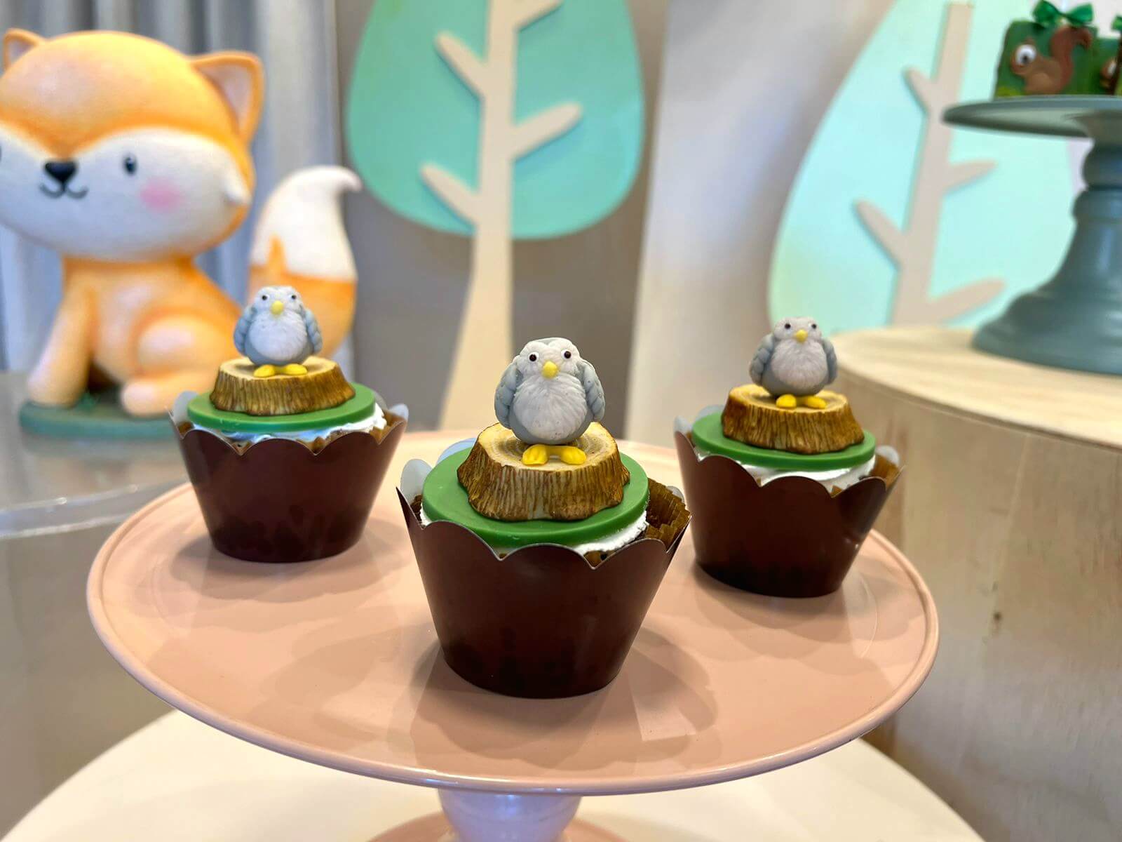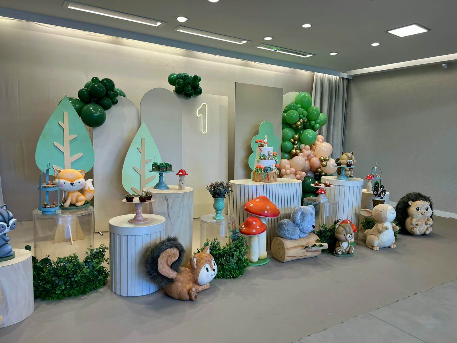 Cada detalhe é pensado para encantar, desde as árvores e cogumelos até os docinhos decorados à mão. Uma proposta charmosa e delicada, ideal para celebrar o primeiro aninho com muito amor e encantamento.