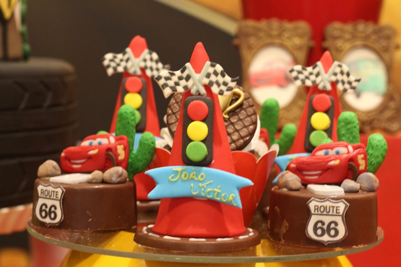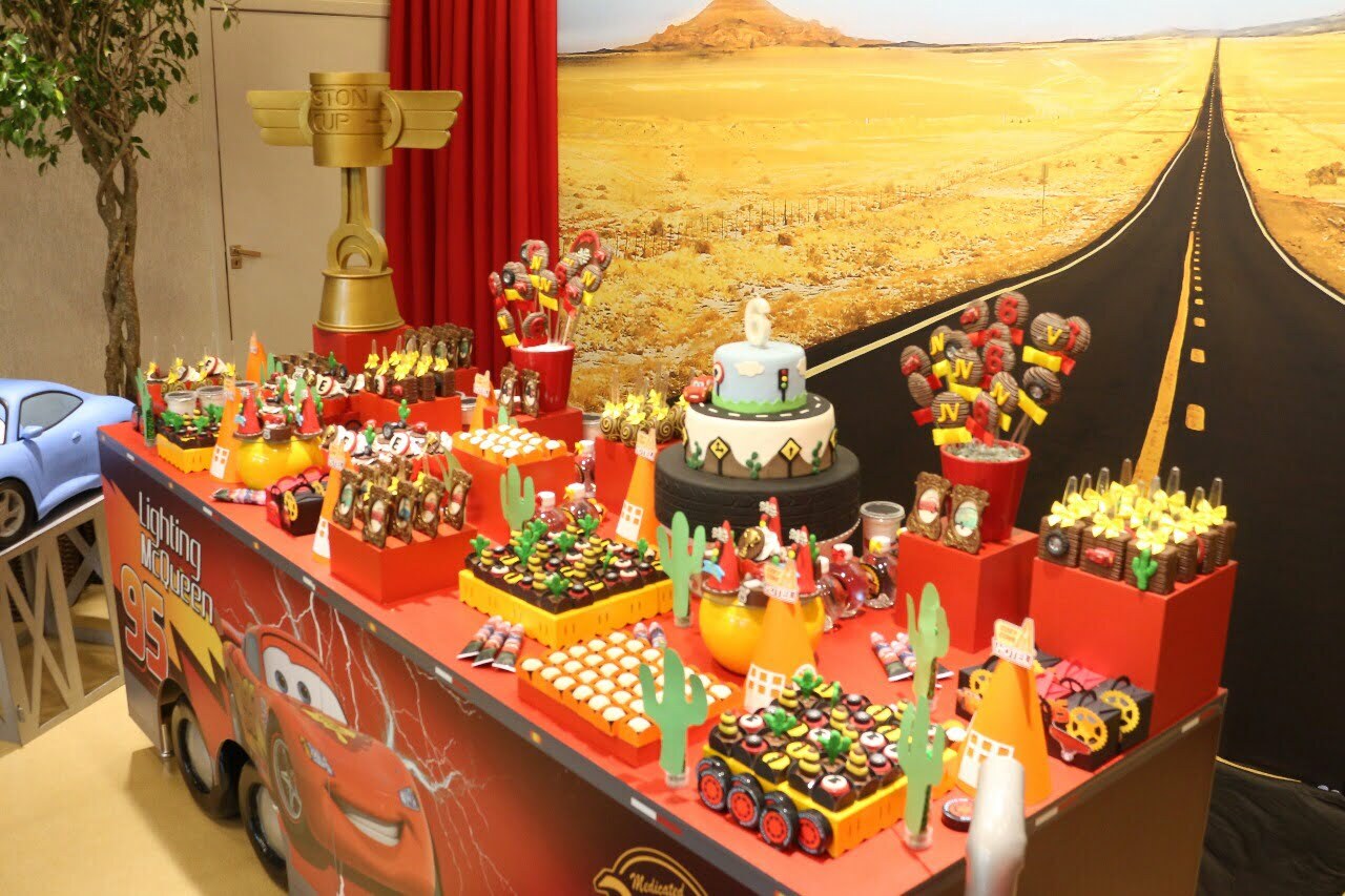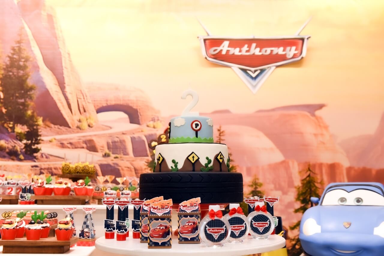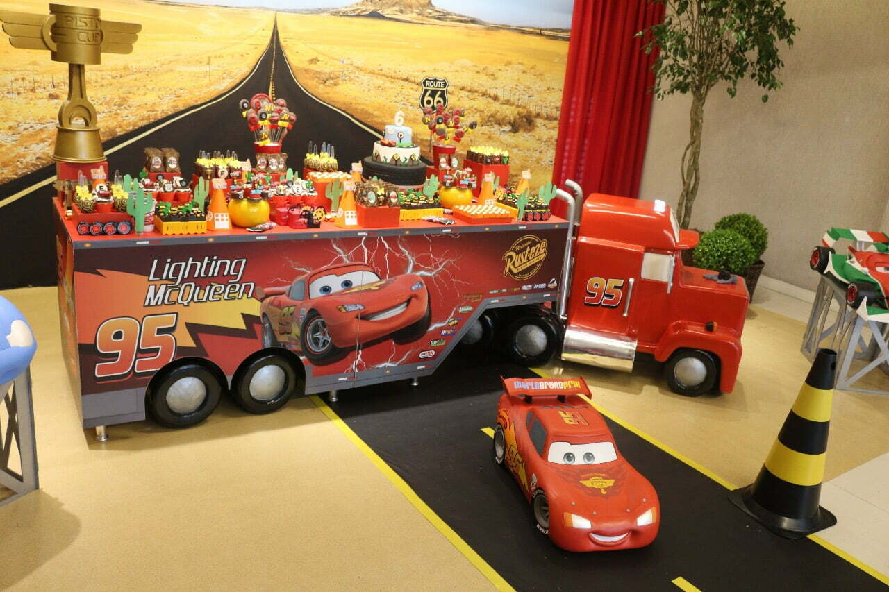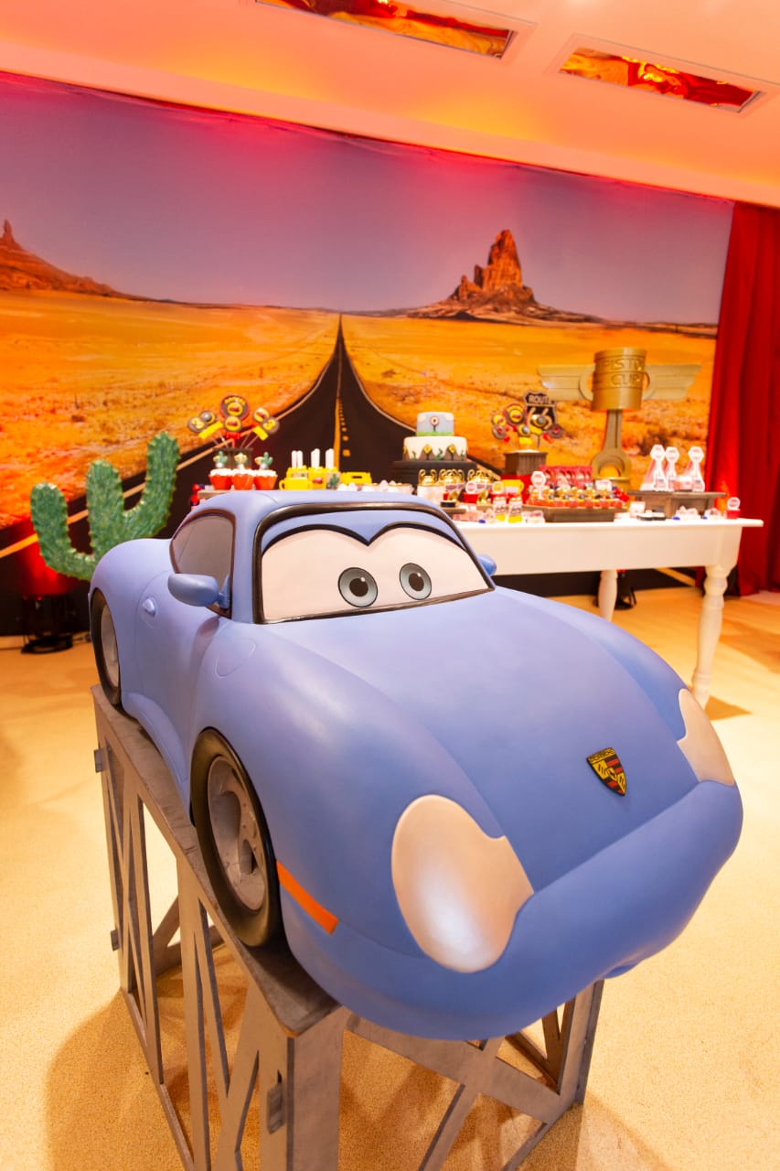 Entre troféus dourados, cones de trânsito e os personagens mais queridos da animação, a festa ganha ritmo e energia do início ao fim. Um tema cheio de movimento, ideal para pequenos apaixonados por motores, aventura e muita adrenalina!