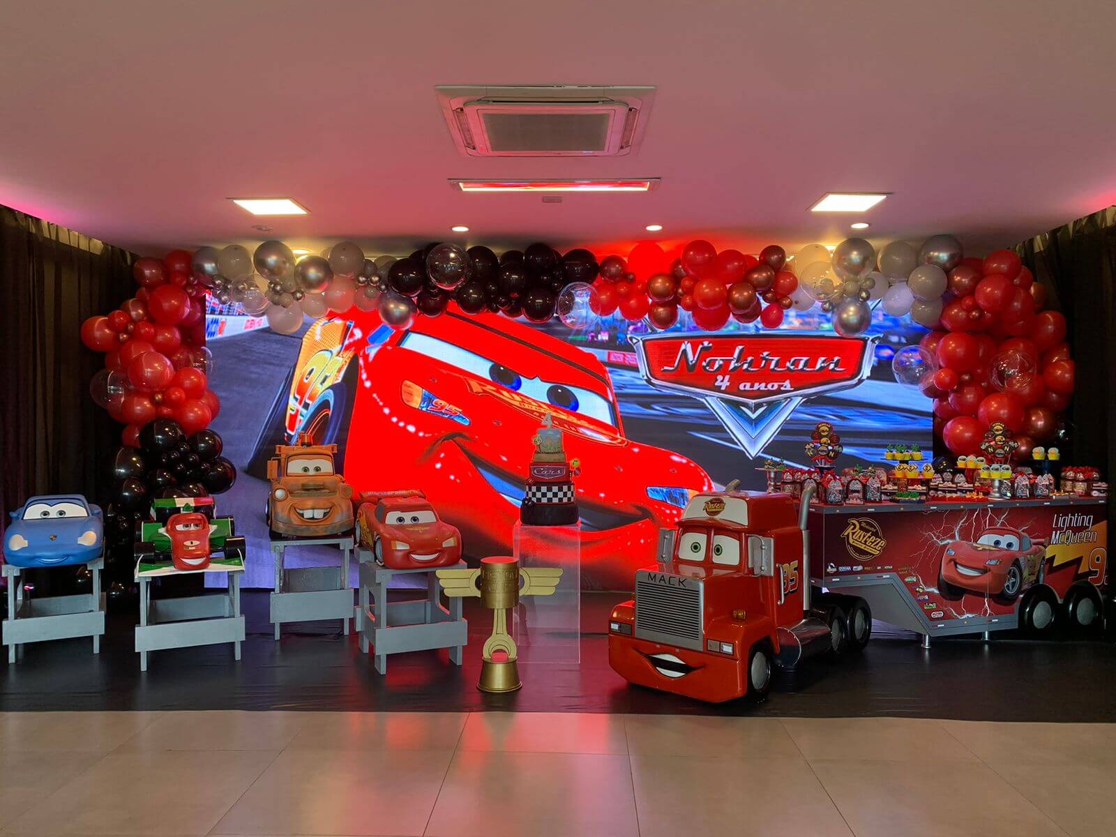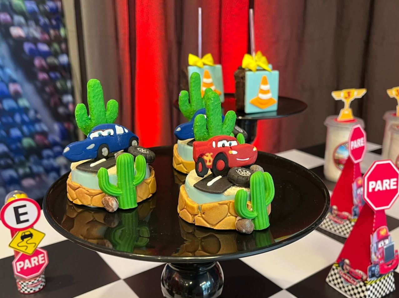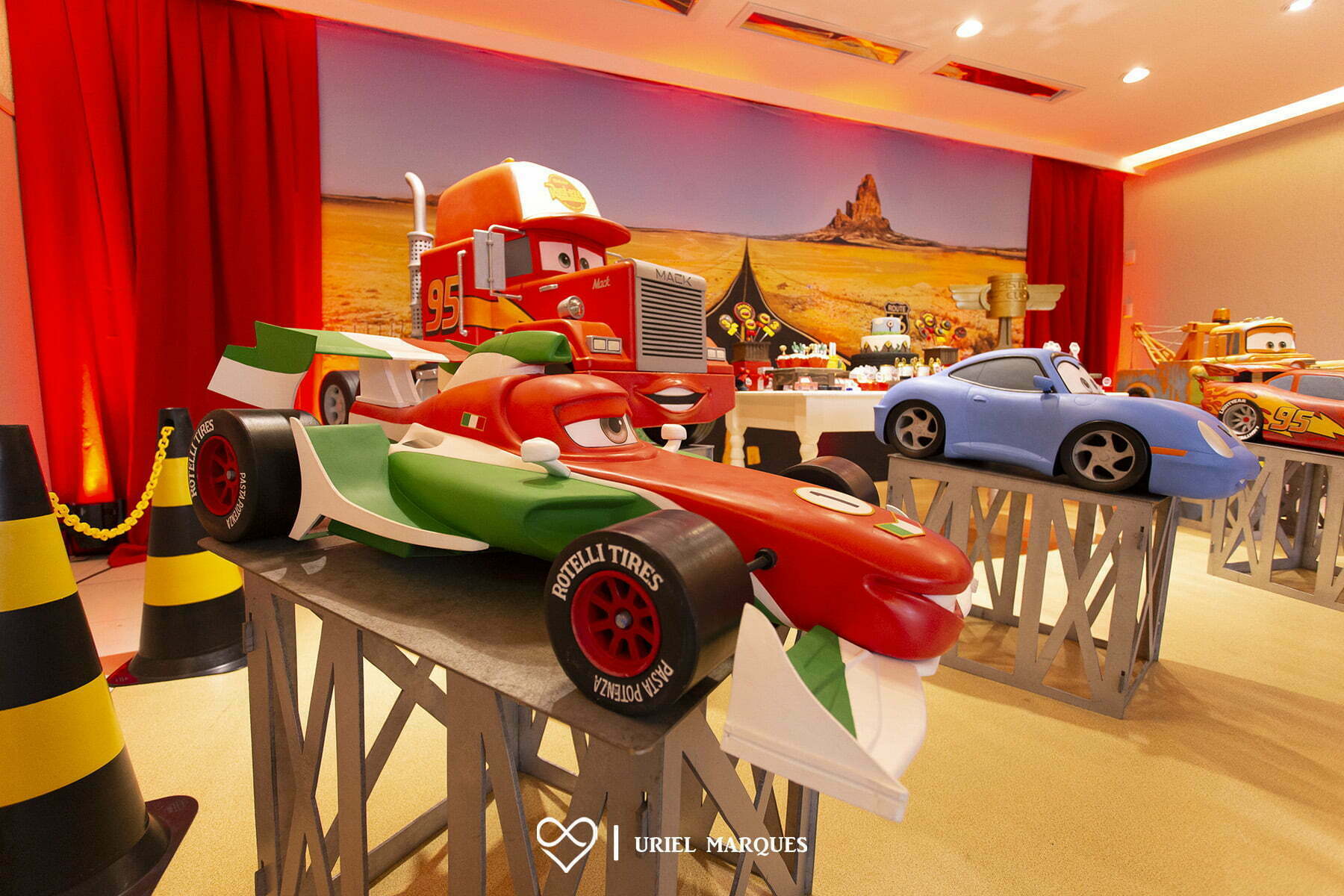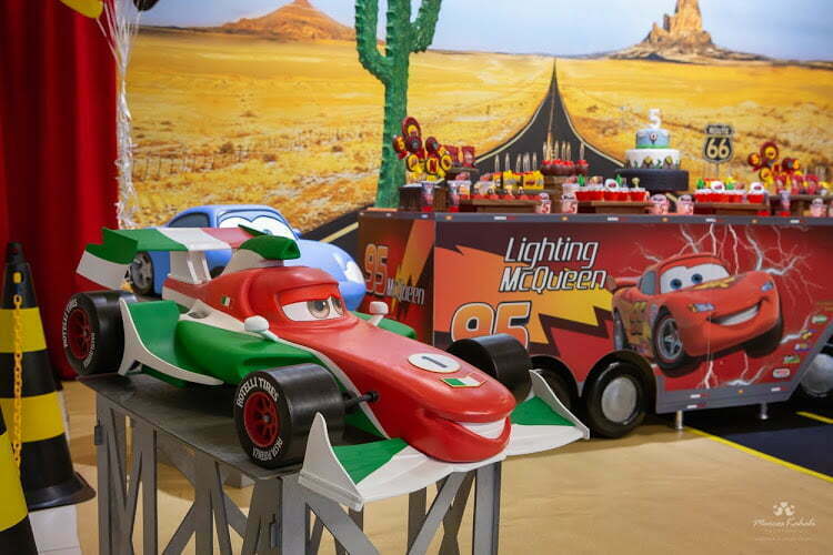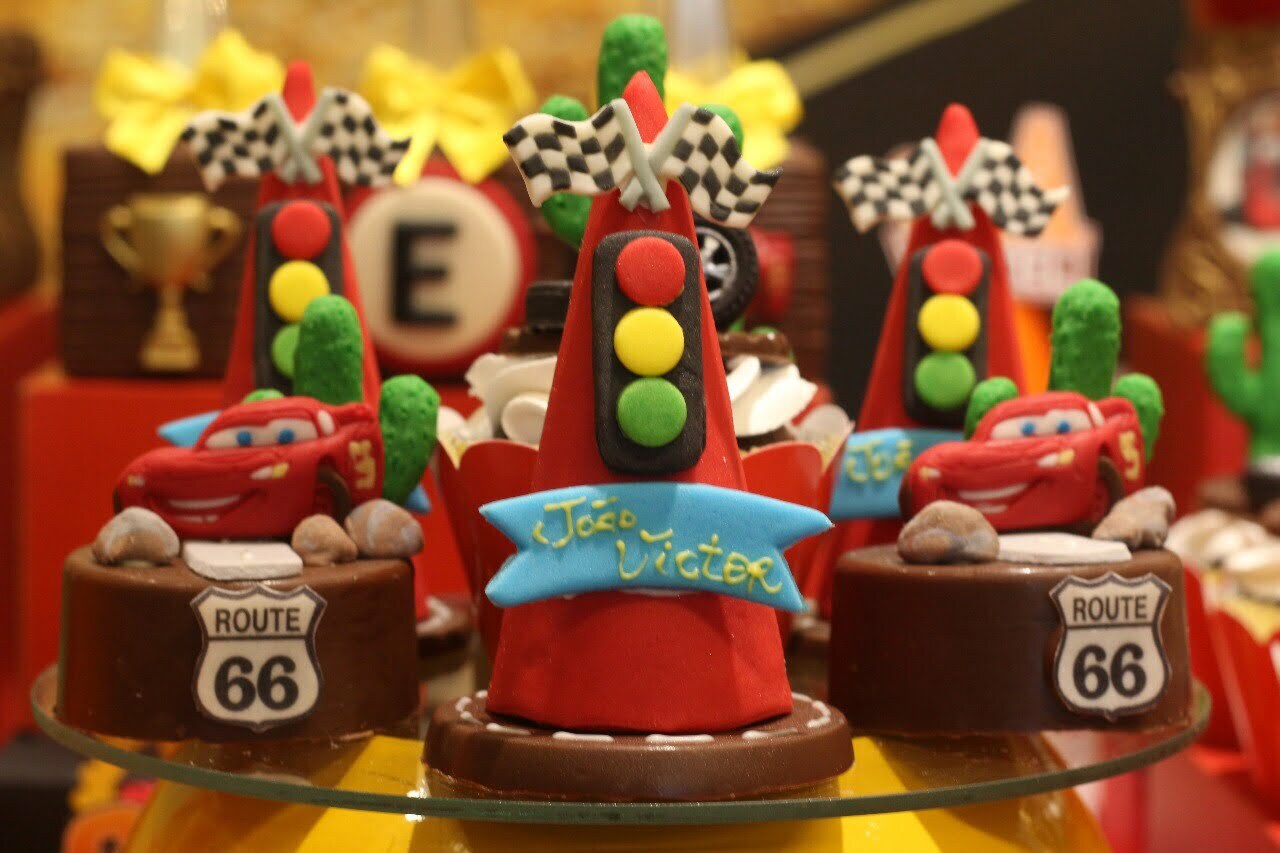 Entre troféus dourados, cones de trânsito e os personagens mais queridos da animação, a festa ganha ritmo e energia do início ao fim. Um tema cheio de movimento, ideal para pequenos apaixonados por motores, aventura e muita adrenalina!