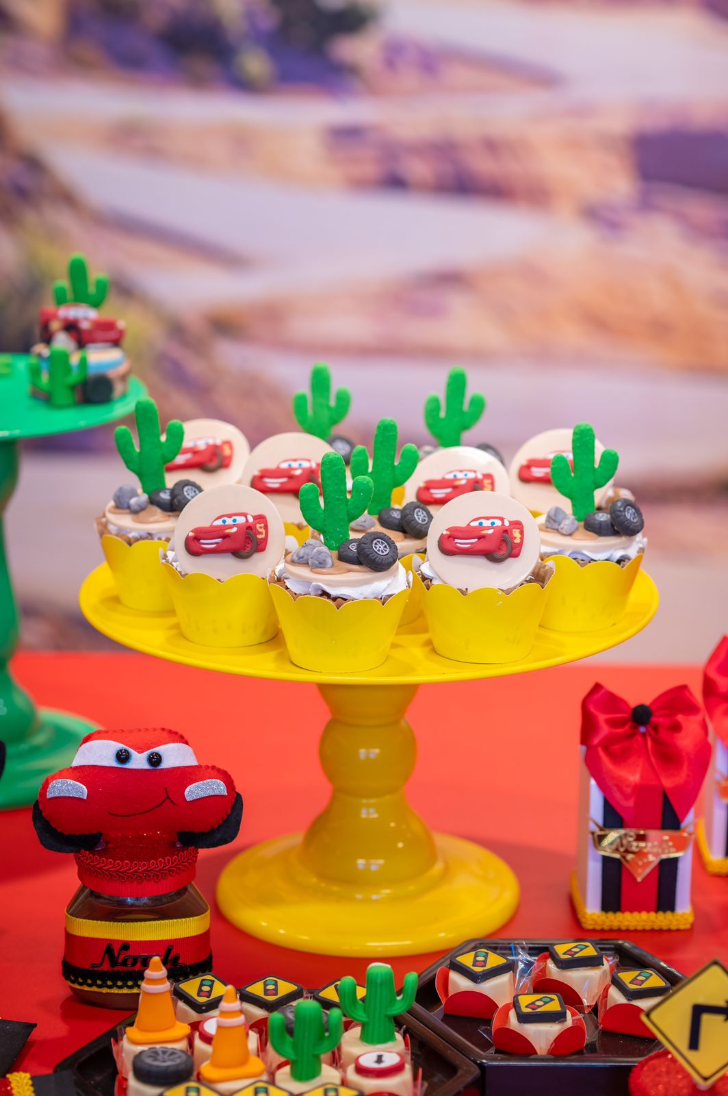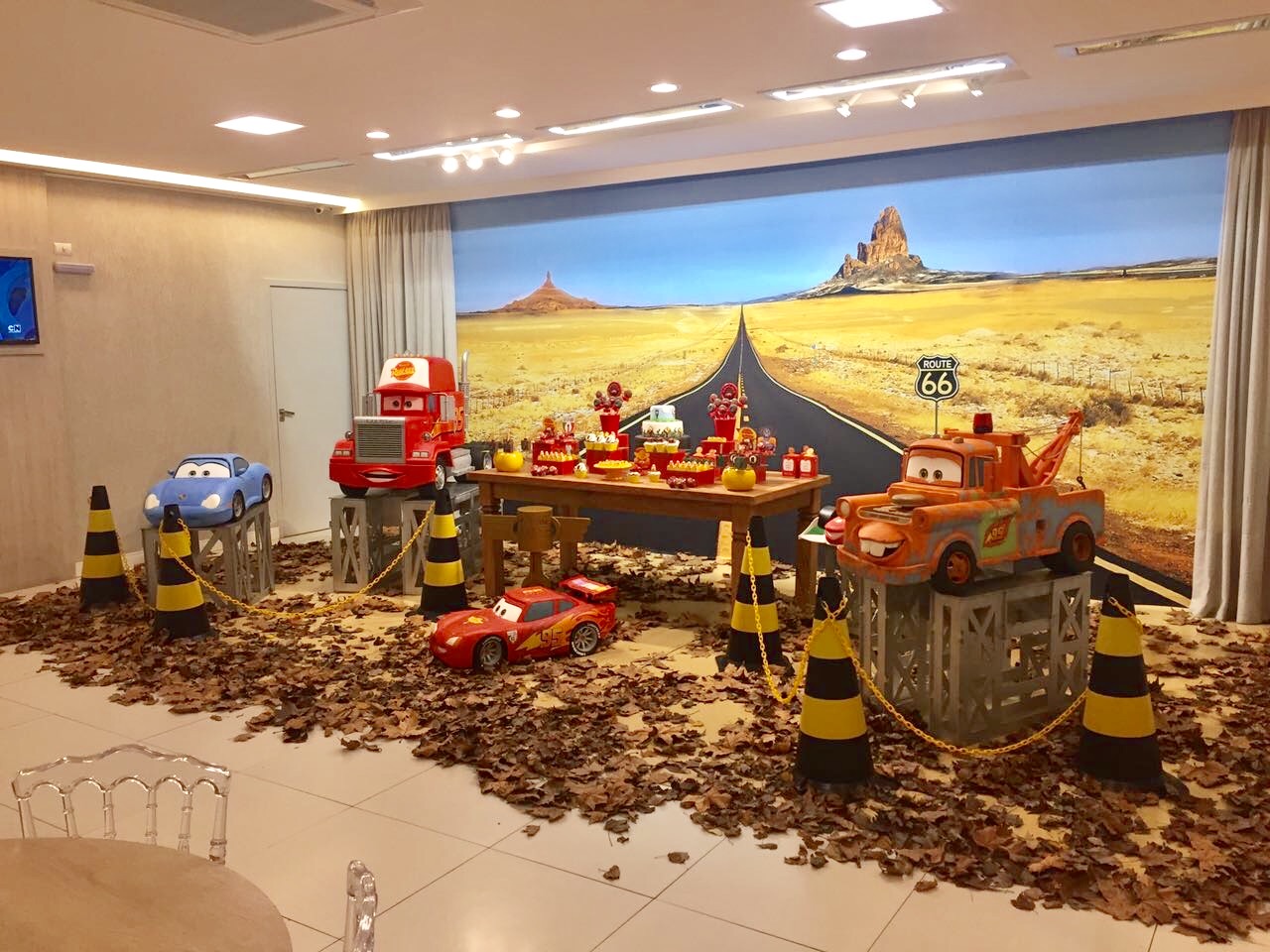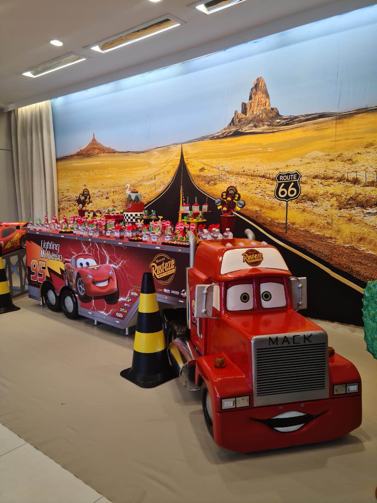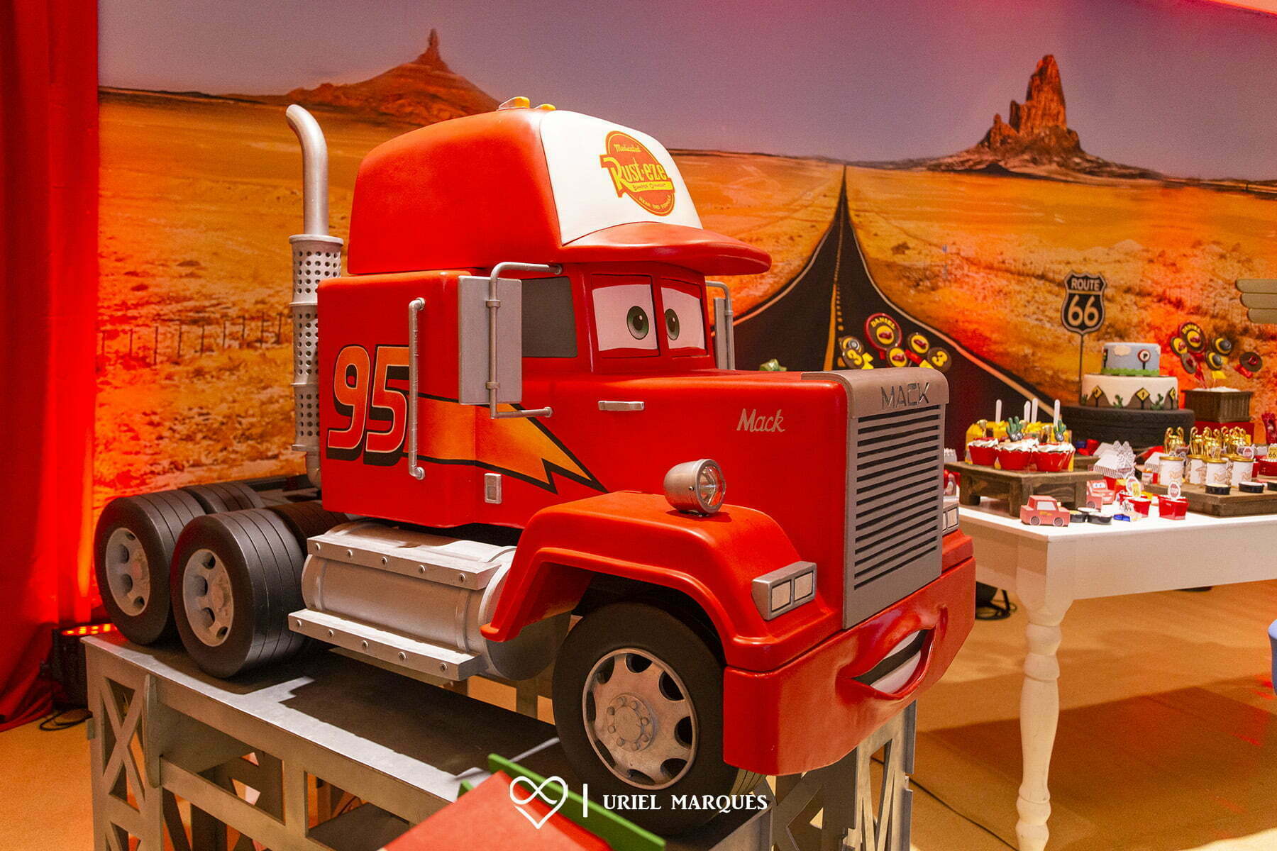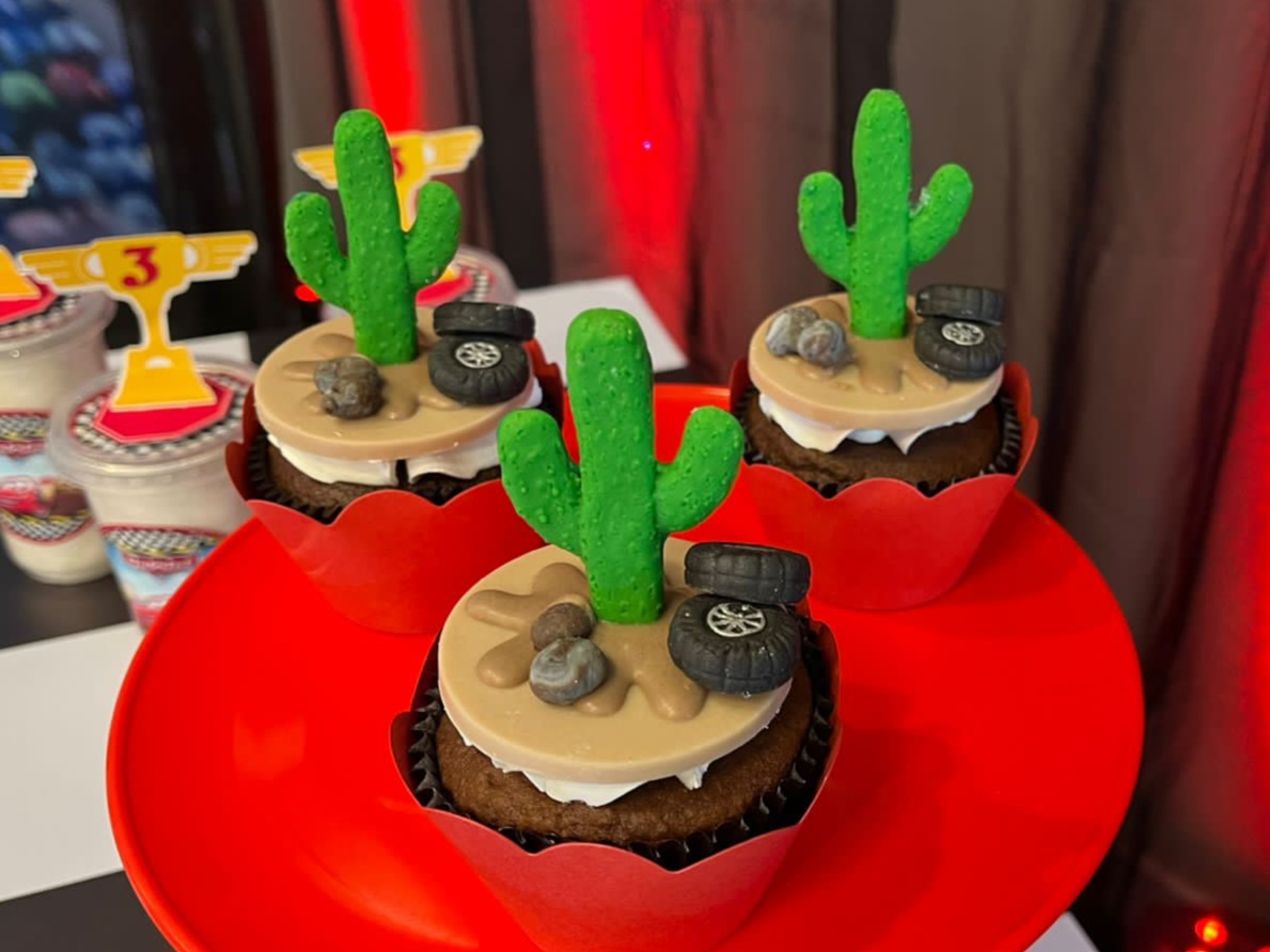 Entre troféus dourados, cones de trânsito e os personagens mais queridos da animação, a festa ganha ritmo e energia do início ao fim. Um tema cheio de movimento, ideal para pequenos apaixonados por motores, aventura e muita adrenalina!