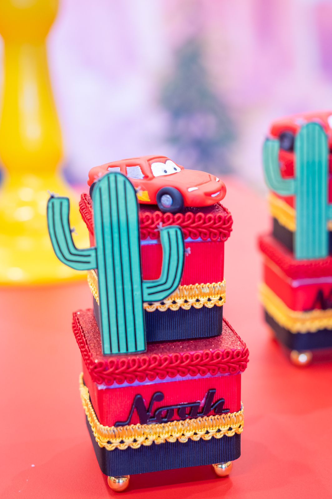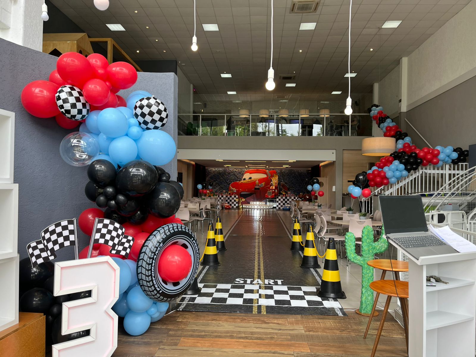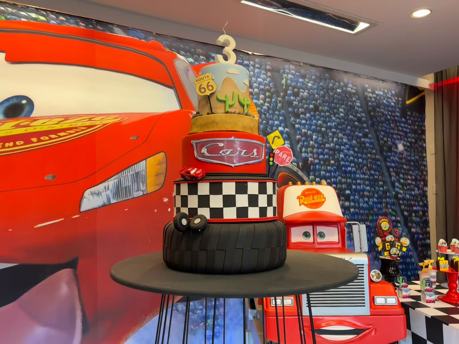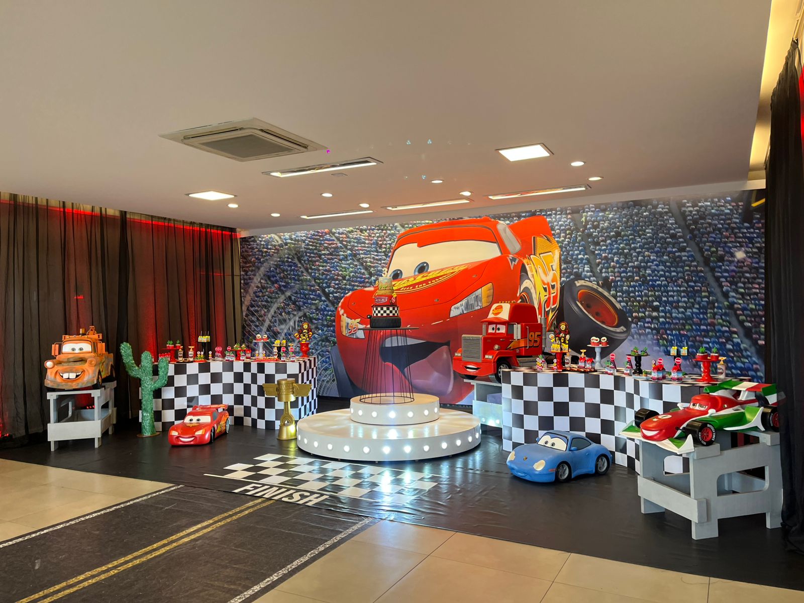 Entre troféus dourados, cones de trânsito e os personagens mais queridos da animação, a festa ganha ritmo e energia do início ao fim. Um tema cheio de movimento, ideal para pequenos apaixonados por motores, aventura e muita adrenalina!