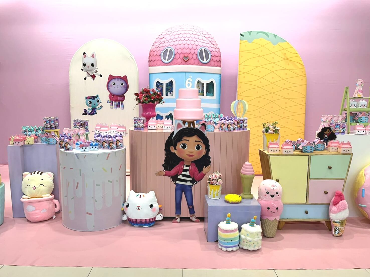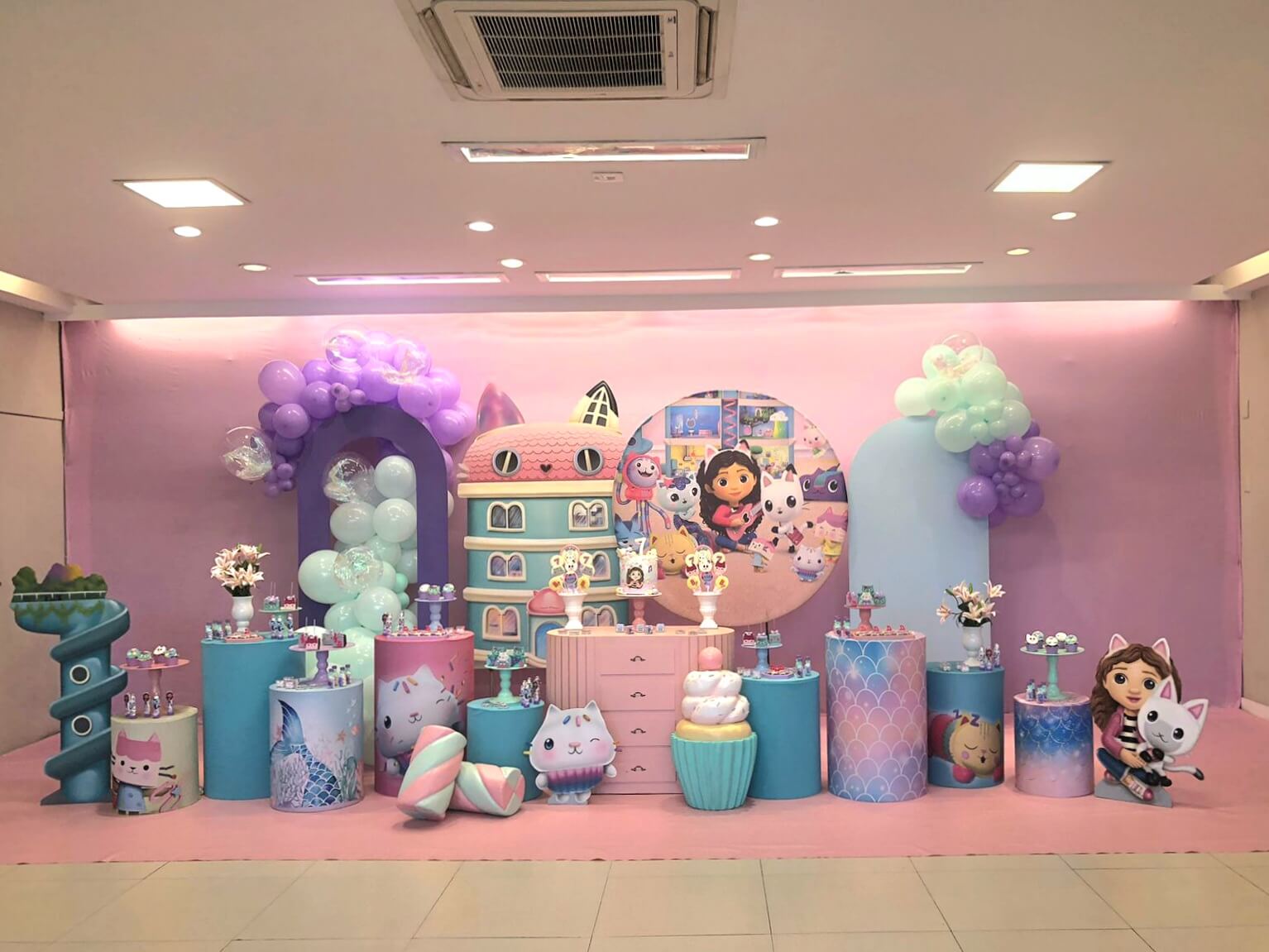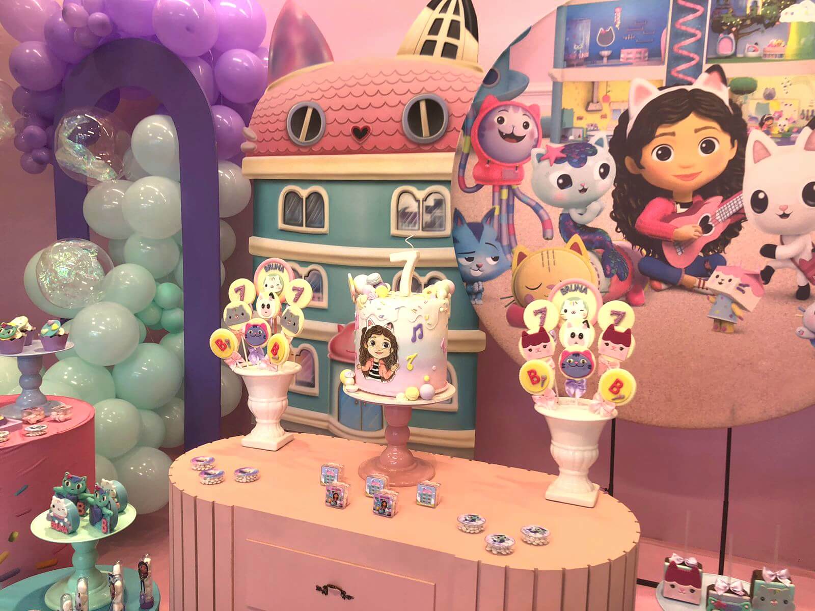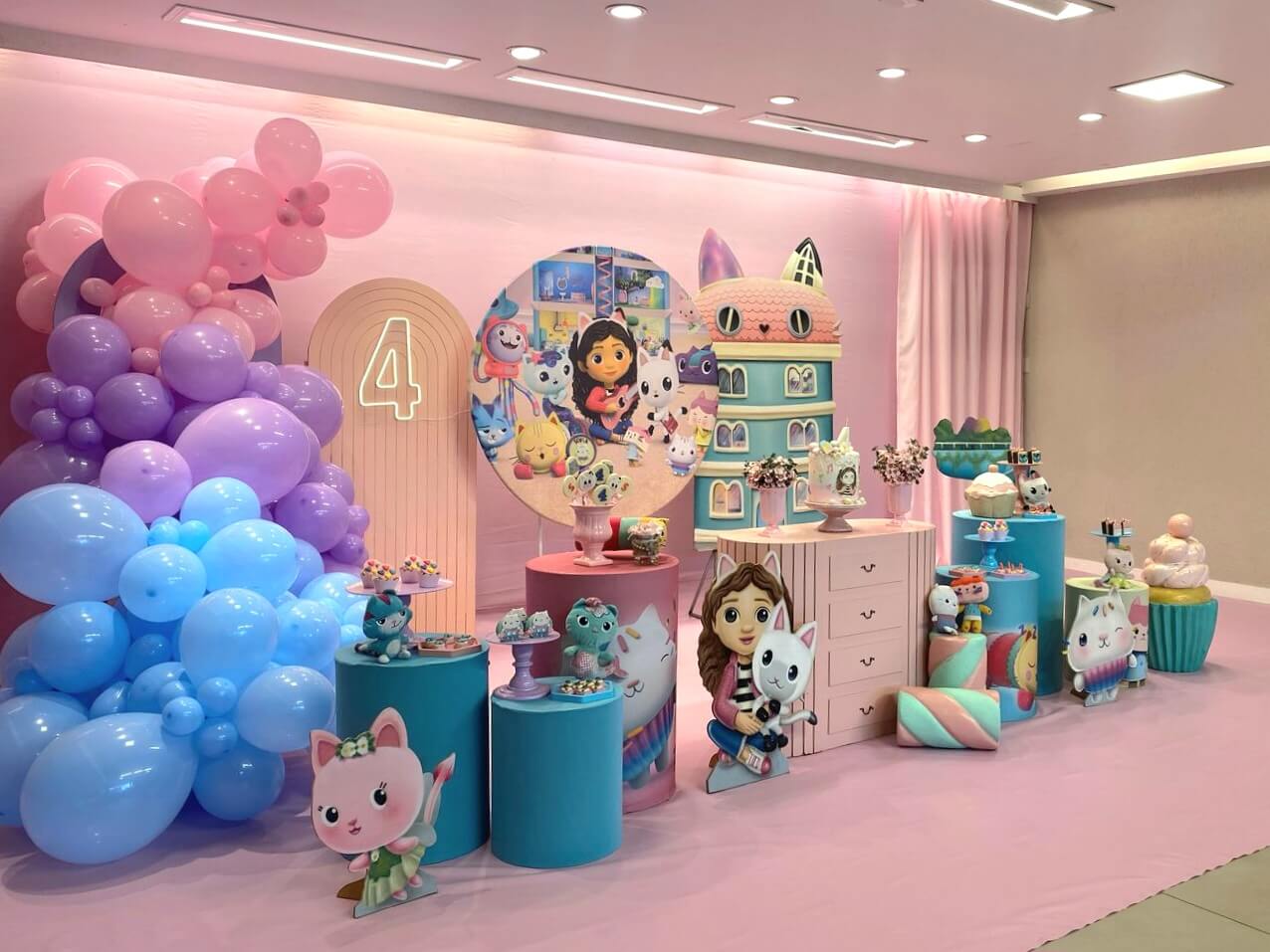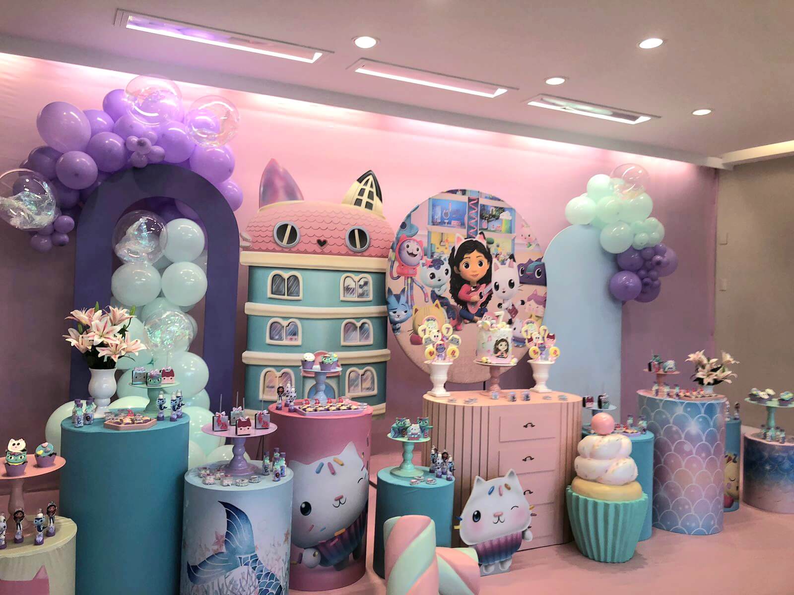 Inspirado na série Gabby’s Dollhouse, esse tema é uma explosão de cores, alegria e imaginação! A decoração mistura elementos lúdicos e detalhes encantadores que reproduzem o universo mágico da gatinha Gabby e seus amigos.