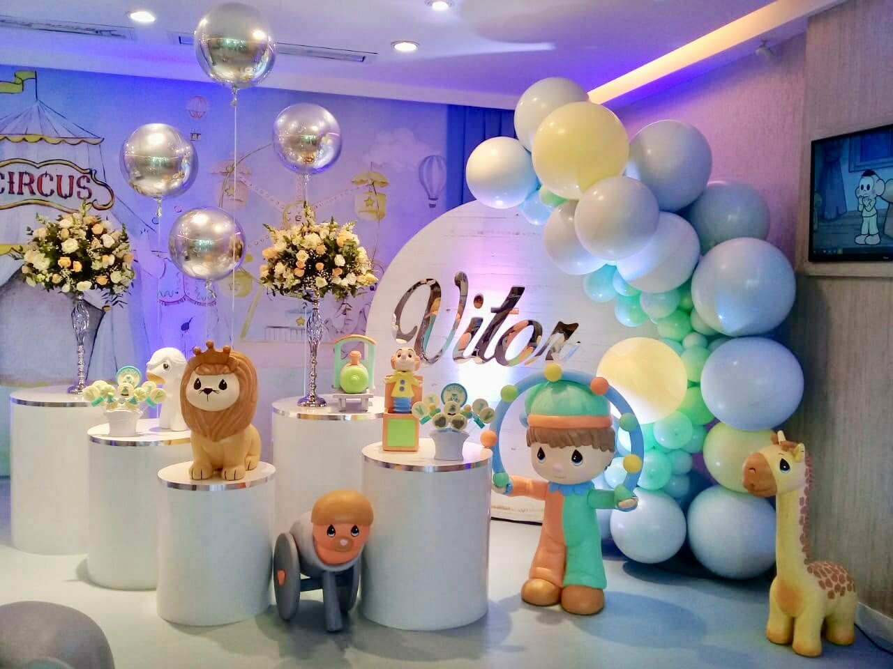 Nesta proposta, o clássico circo ganha um toque contemporâneo e encantador, ideal para comemorar os primeiros anos de vida com muito estilo. Balões orgânicos, personagens lúdicos e doces personalizados criam uma atmosfera alegre, doce e sofisticada.