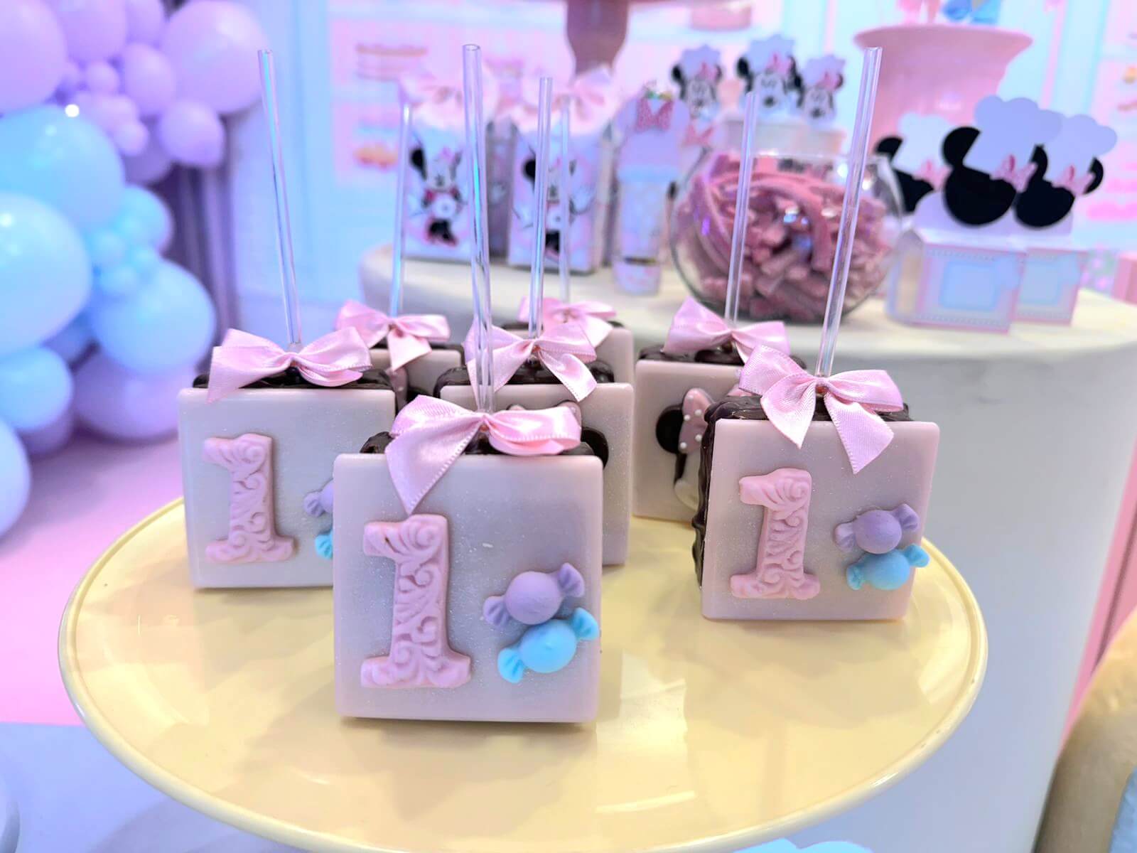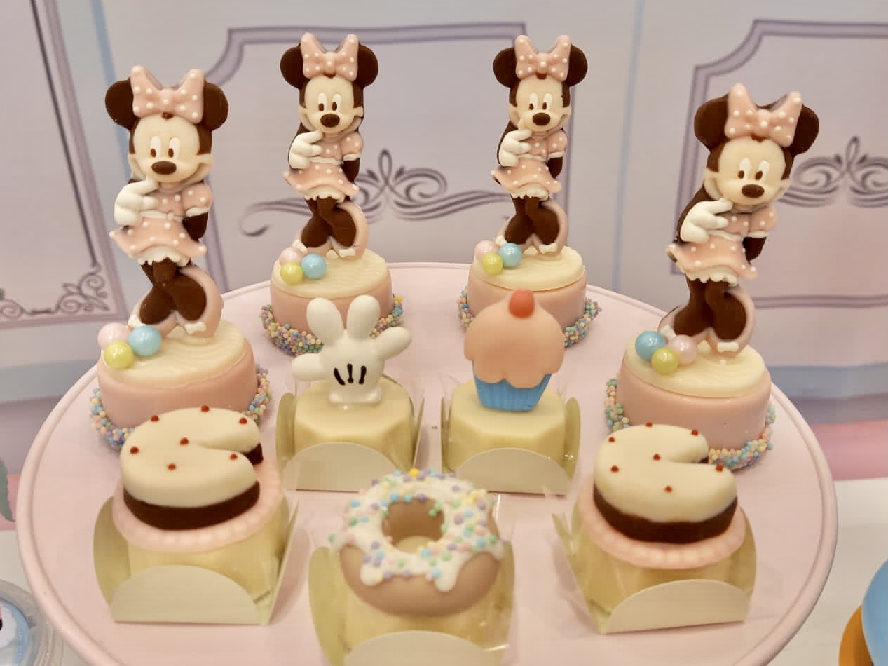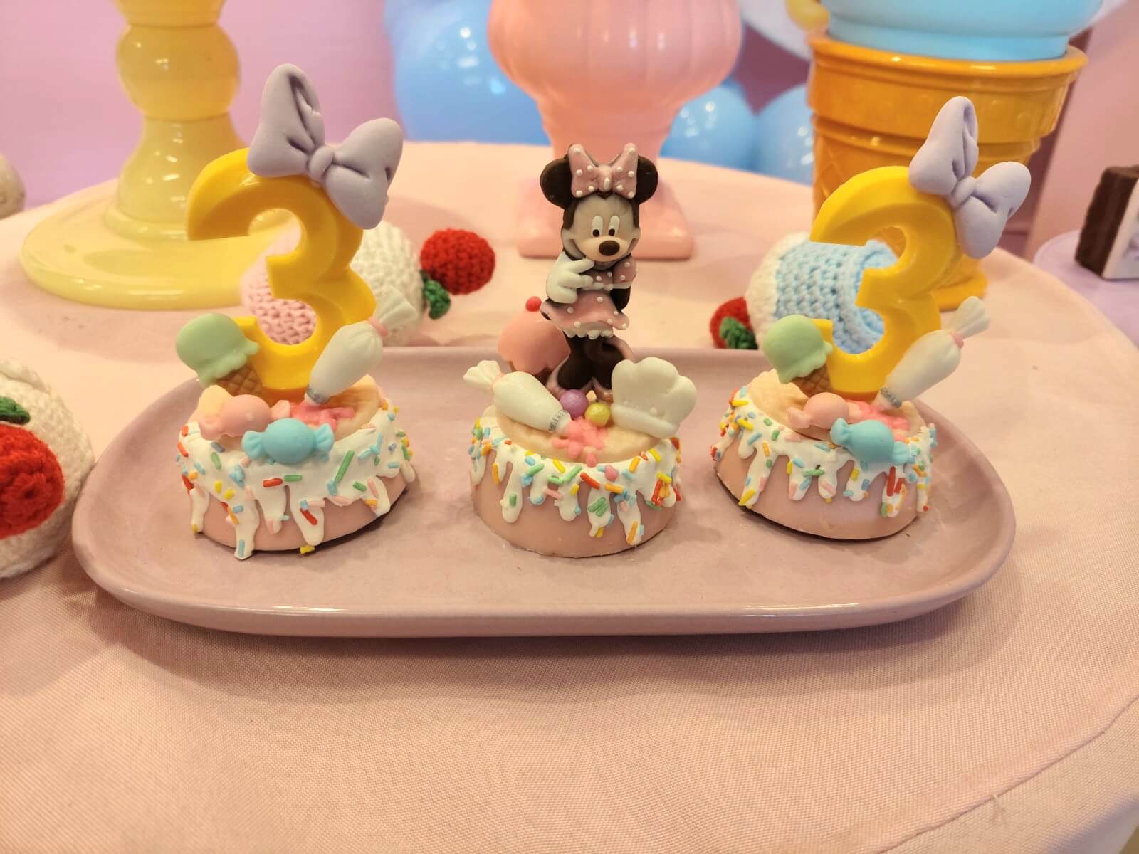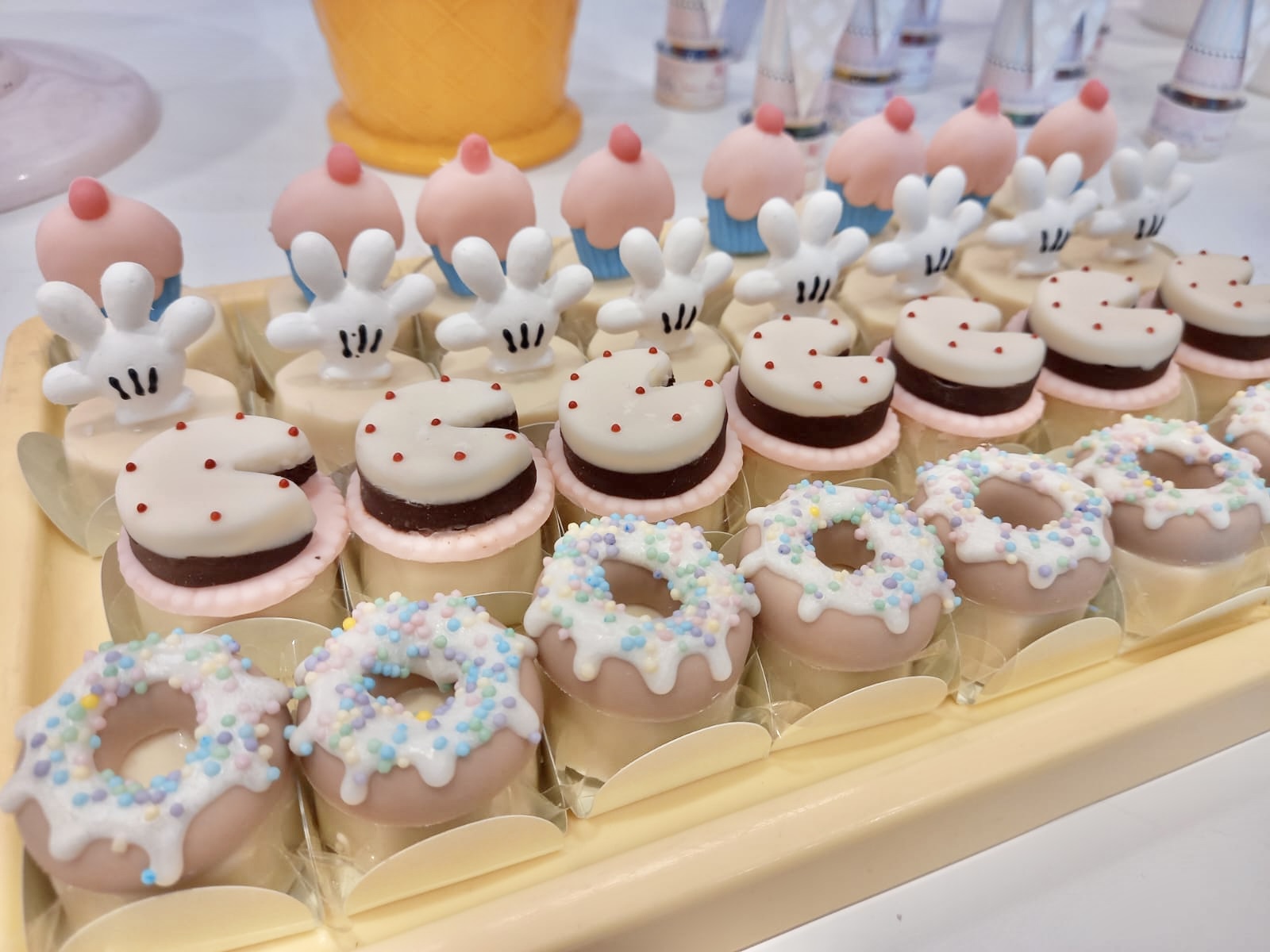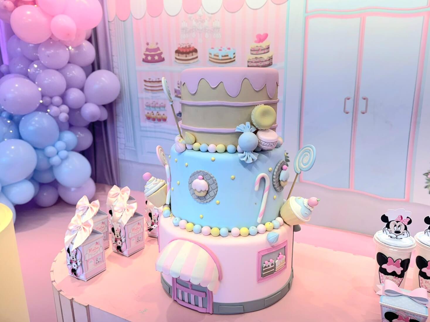 O tema Confeitaria da Minnie é um verdadeiro sonho açucarado, com cores suaves, doces gigantes e a presença encantadora da Minnie vestida de confeiteira. Um cenário repleto de cupcakes, donuts e macarons que transformam o ambiente em uma charmosa padaria cor-de-rosa digna da Disney.