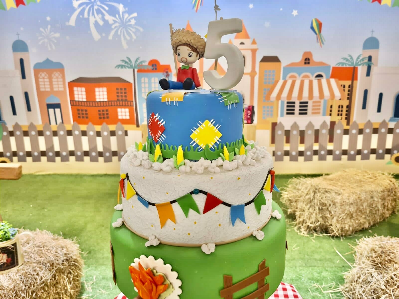 O tema Festa Junina transforma o ambiente em um verdadeiro arraial de encantos, com bandeirinhas, palha, chapéus de caipira e muitas delícias típicas. A mesa de doces ganha vida com detalhes rústicos, tecidos de chita, estampas xadrez e uma explosão de cores que remetem às festas do interior.