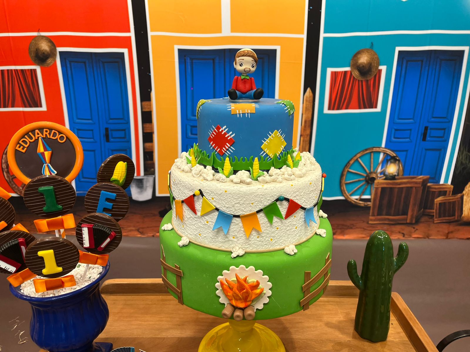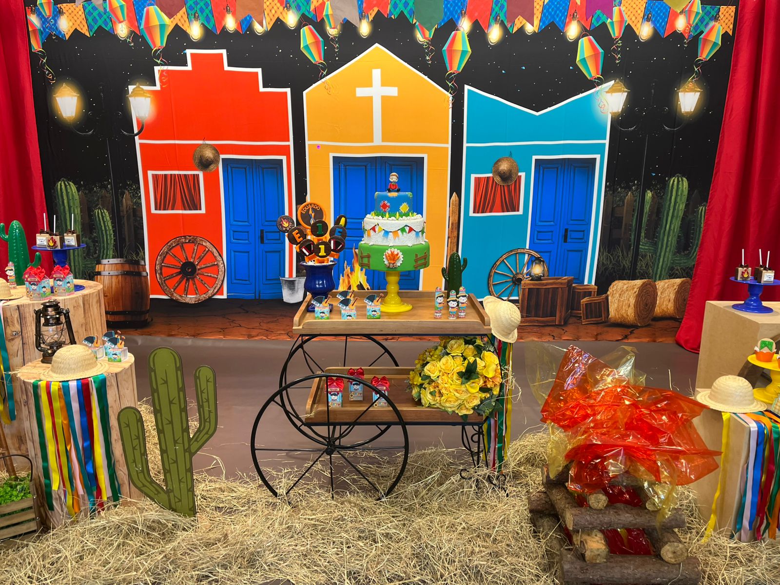Decoração Personalizada assinada pela equipe de Party Designers & Event Planners do Mundo Kids, com várias montagens que celebram o charme e a alegria da cultura popular brasileira em um cenário acolhedor e cheio de vida.