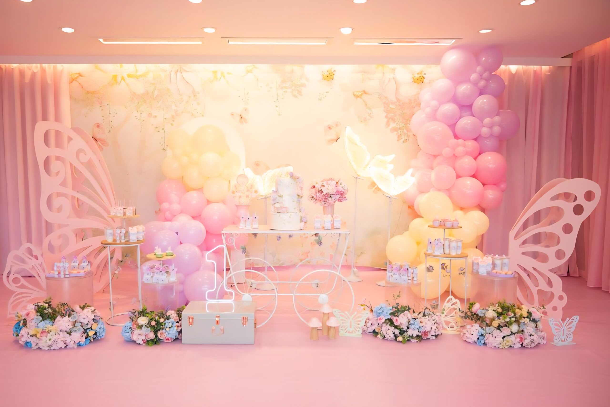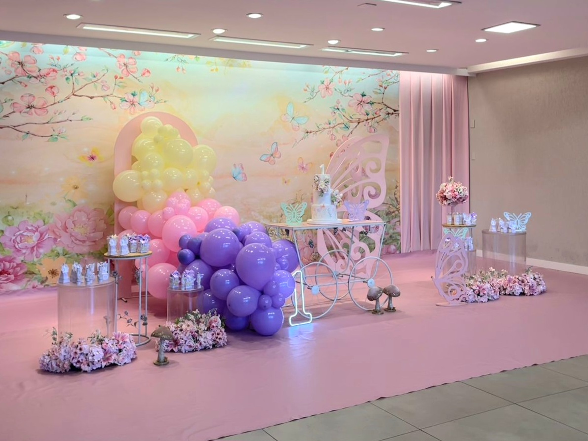 Com arranjos delicados, balões metalizados e mobiliário em harmonia com a paleta pastel, a produção da Mundo Kids transforma o ambiente em um verdadeiro jardim encantado, perfeito para celebrações inesquecíveis.