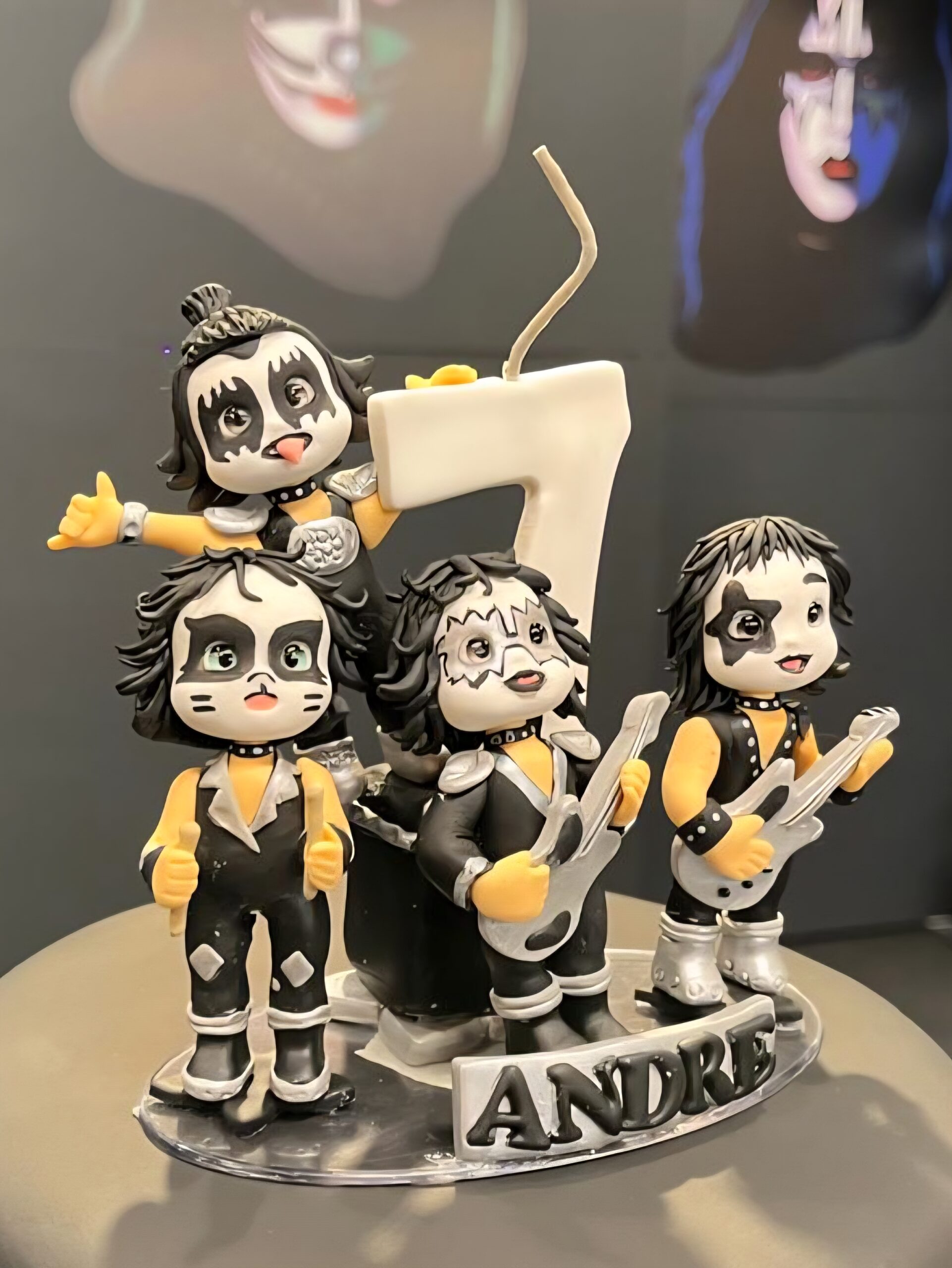 O tema Banda Kiss transforma a festa em um verdadeiro palco de rock, inspirado no icônico grupo que marcou gerações.