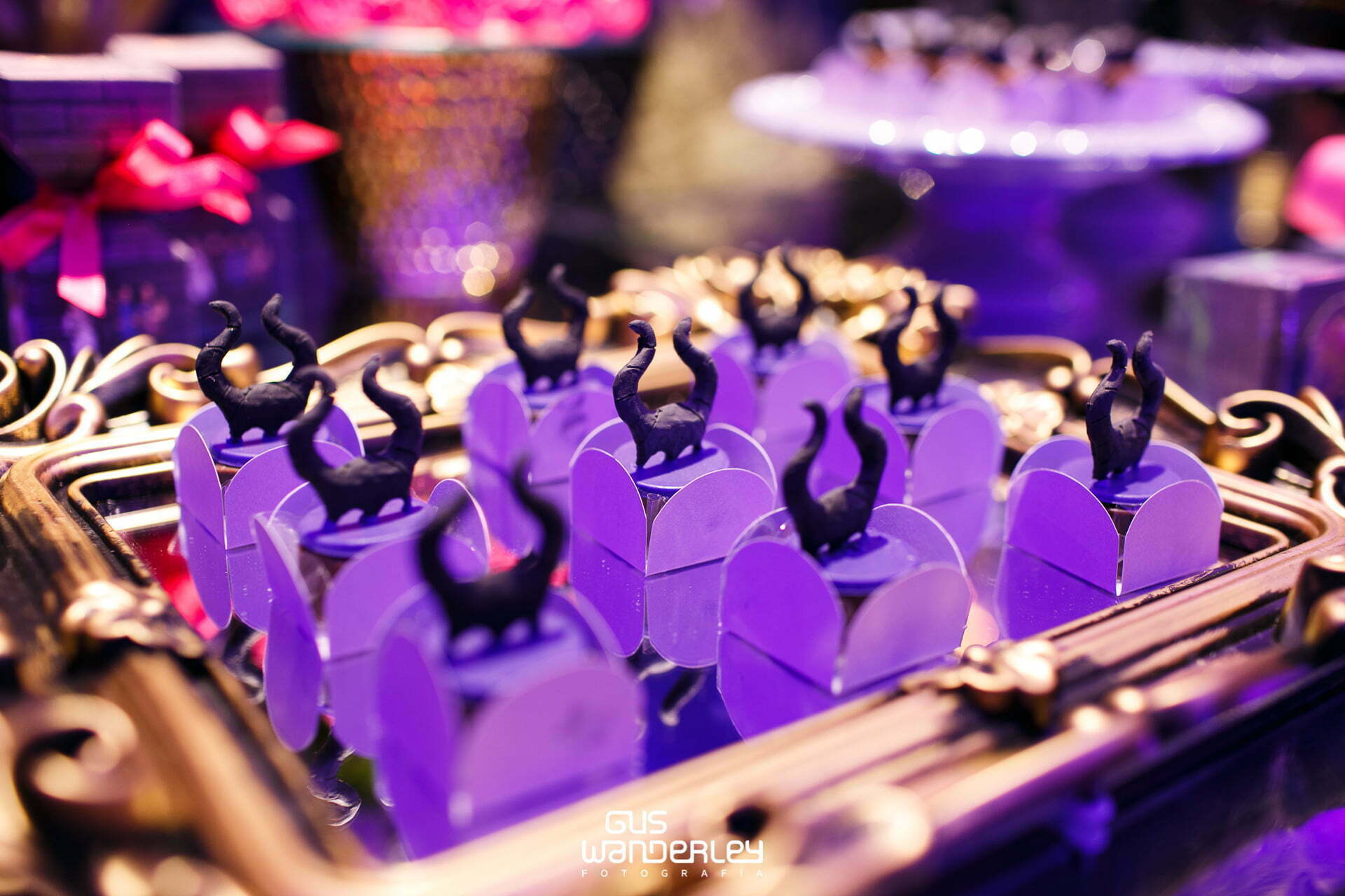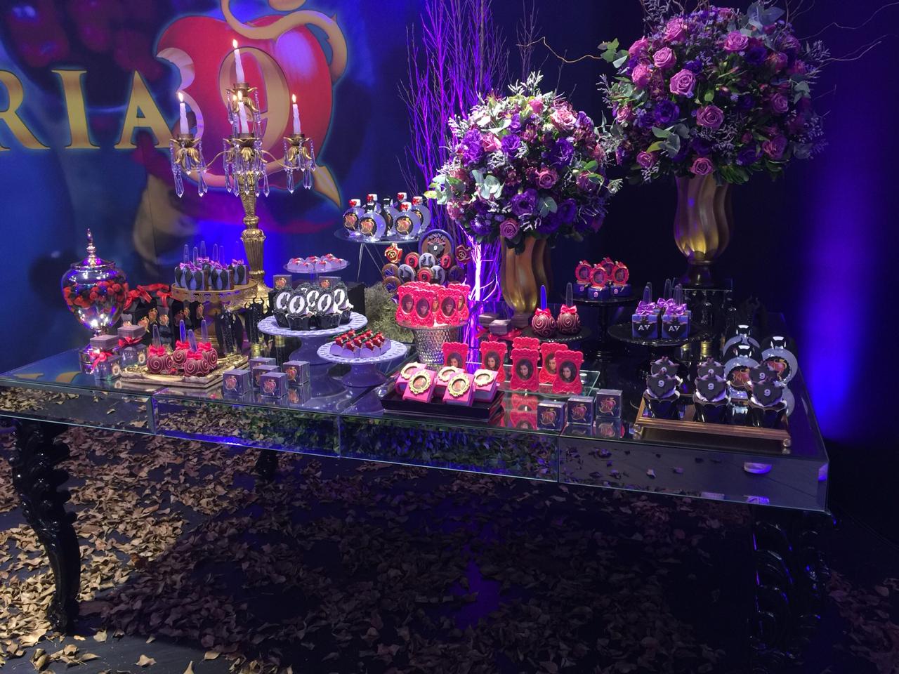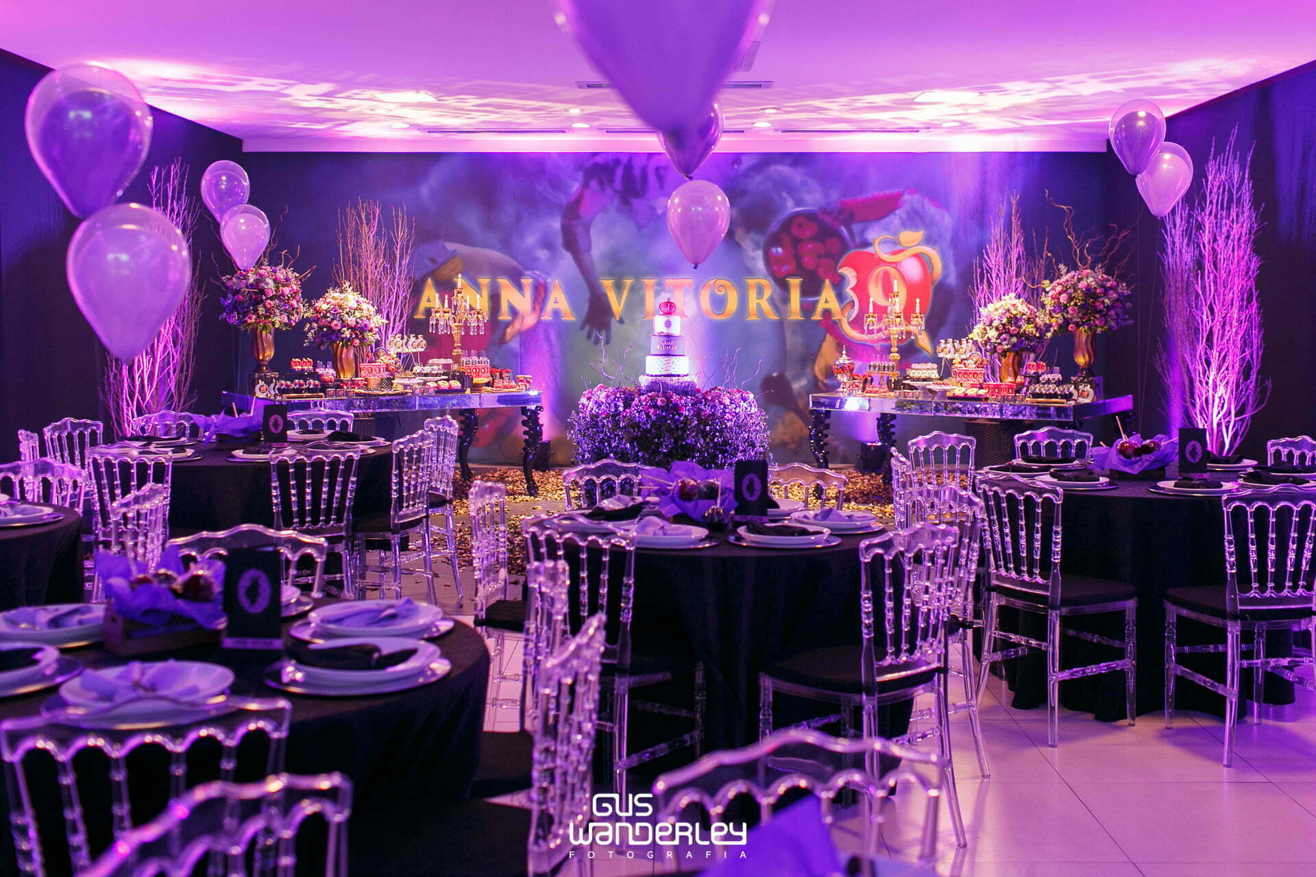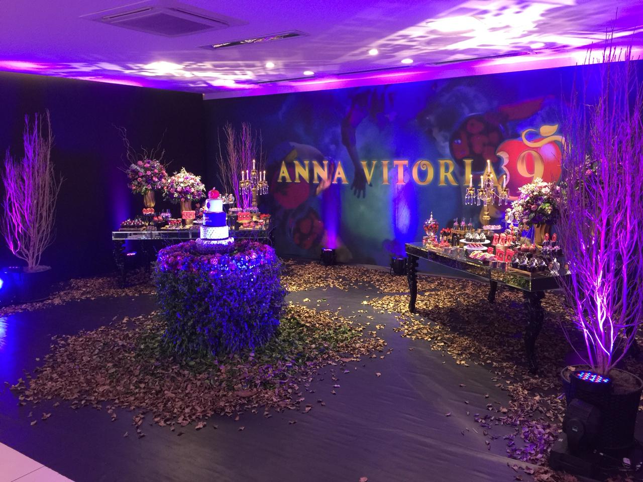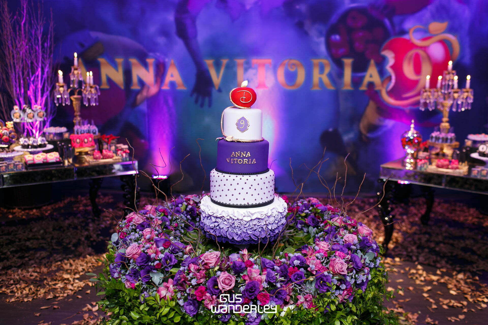 O tema Malévola e os Descendentes traz um toque de mistério e elegância ao universo das festas infantis. Com iluminação roxa, preto e dourado, a decoração cria um clima mágico e sofisticado, remetendo ao mundo encantado das vilãs e heróis da Disney.