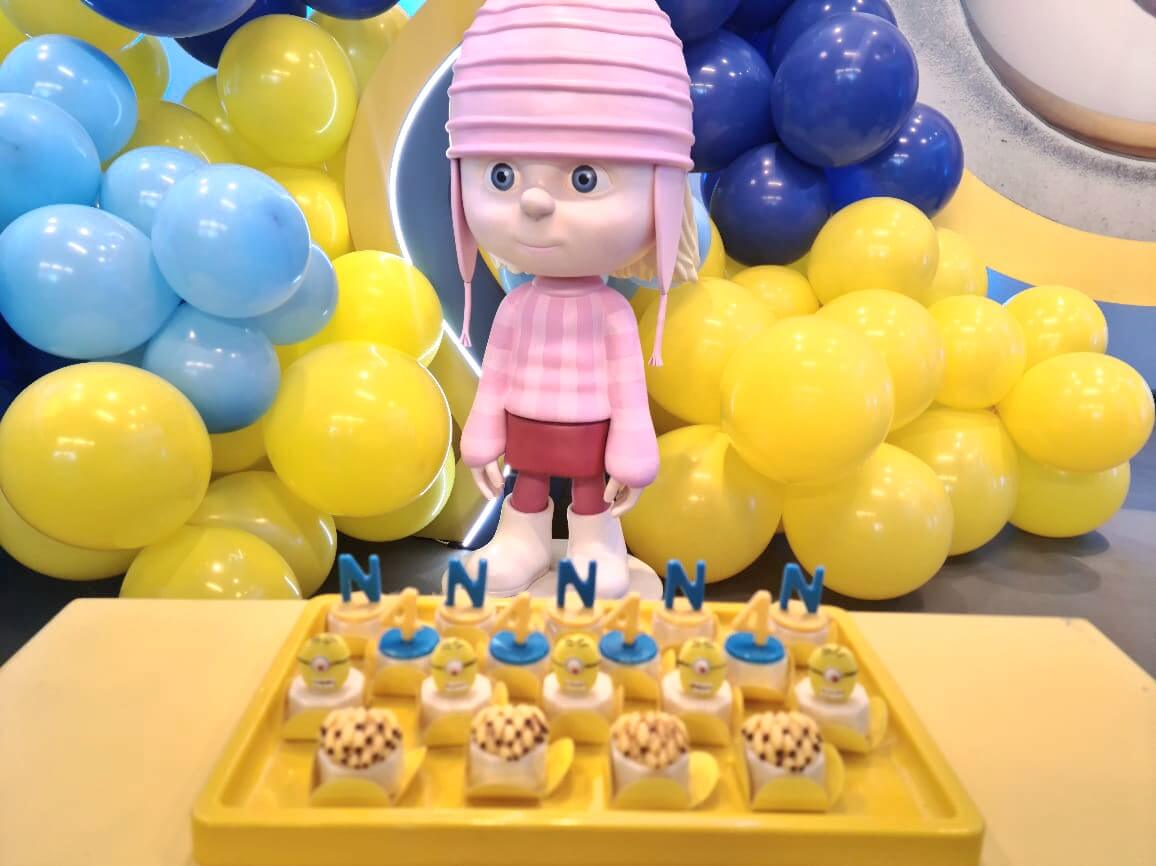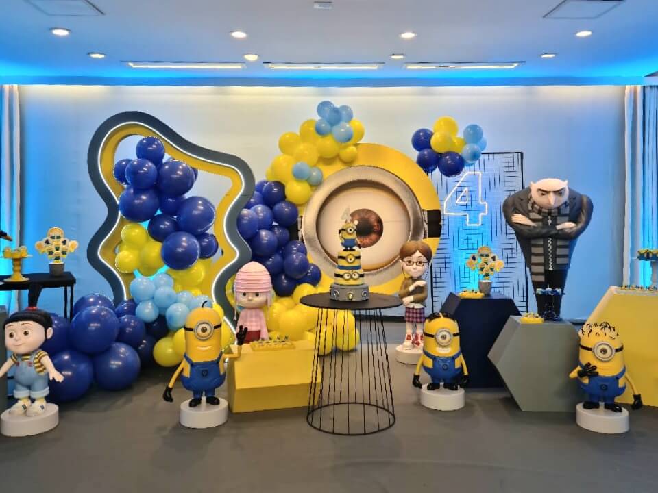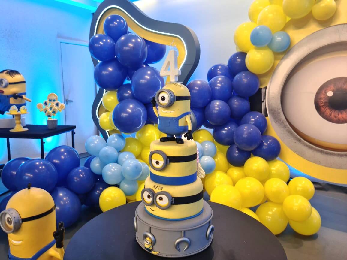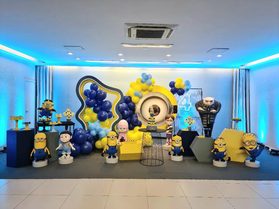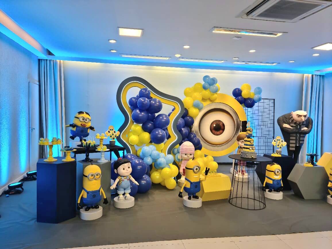 O tema Meu Malvado Favorito e Minions é pura diversão e energia! Com muito amarelo e azul, o cenário ganha vida com os personagens mais engraçados do cinema — Gru, Agnes e, claro, os Minions.