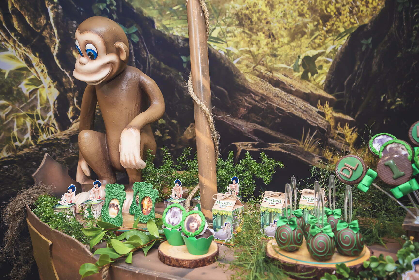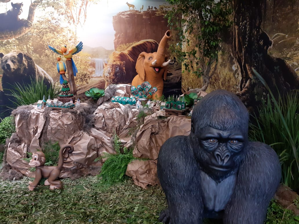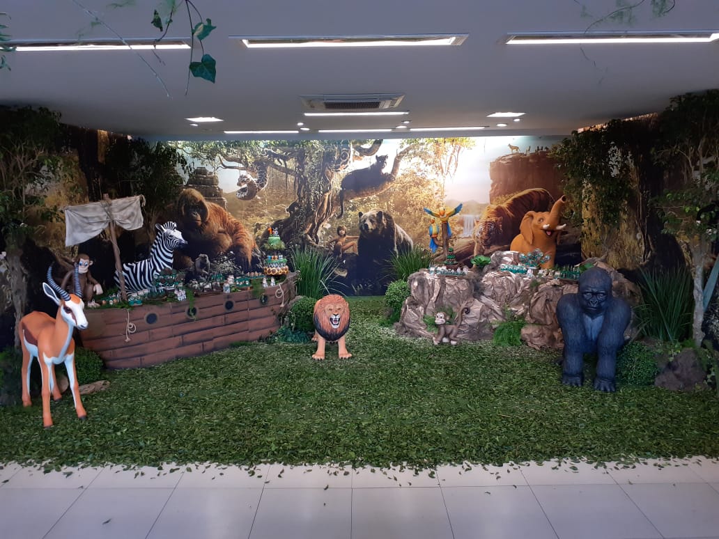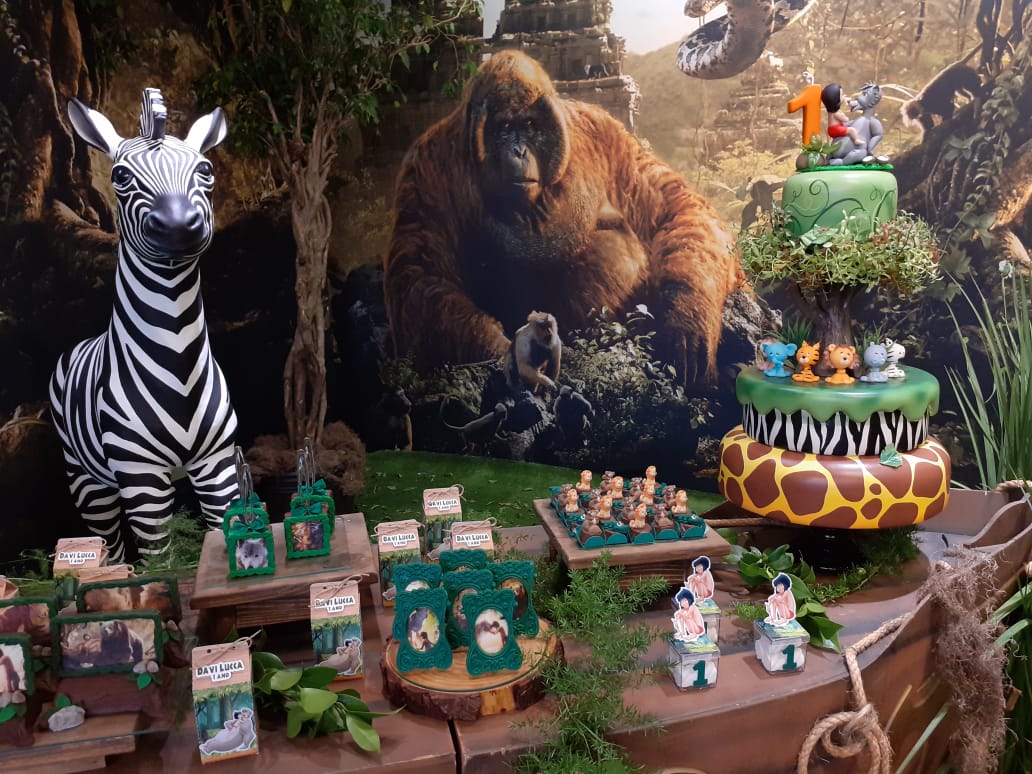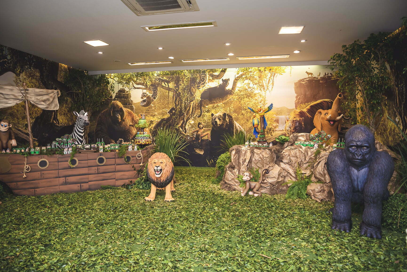 O tema Mogli – O Menino Lobo transforma a festa em uma verdadeira aventura pela selva! Inspirado no clássico da Disney, o cenário da Mundo Kids mistura elementos naturais, folhagens exuberantes e os icônicos personagens como Baloo, Bagheera e o próprio Mogli.