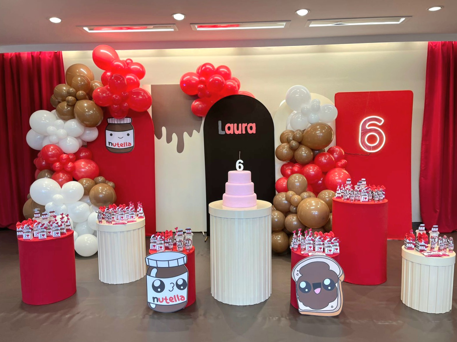 Com o tema Nutella, criamos uma decoração irresistível, repleta de elementos que remetem ao sabor que todo mundo ama: tons aconchegantes, detalhes gourmand e aquela atmosfera doce que encanta crianças e adultos.