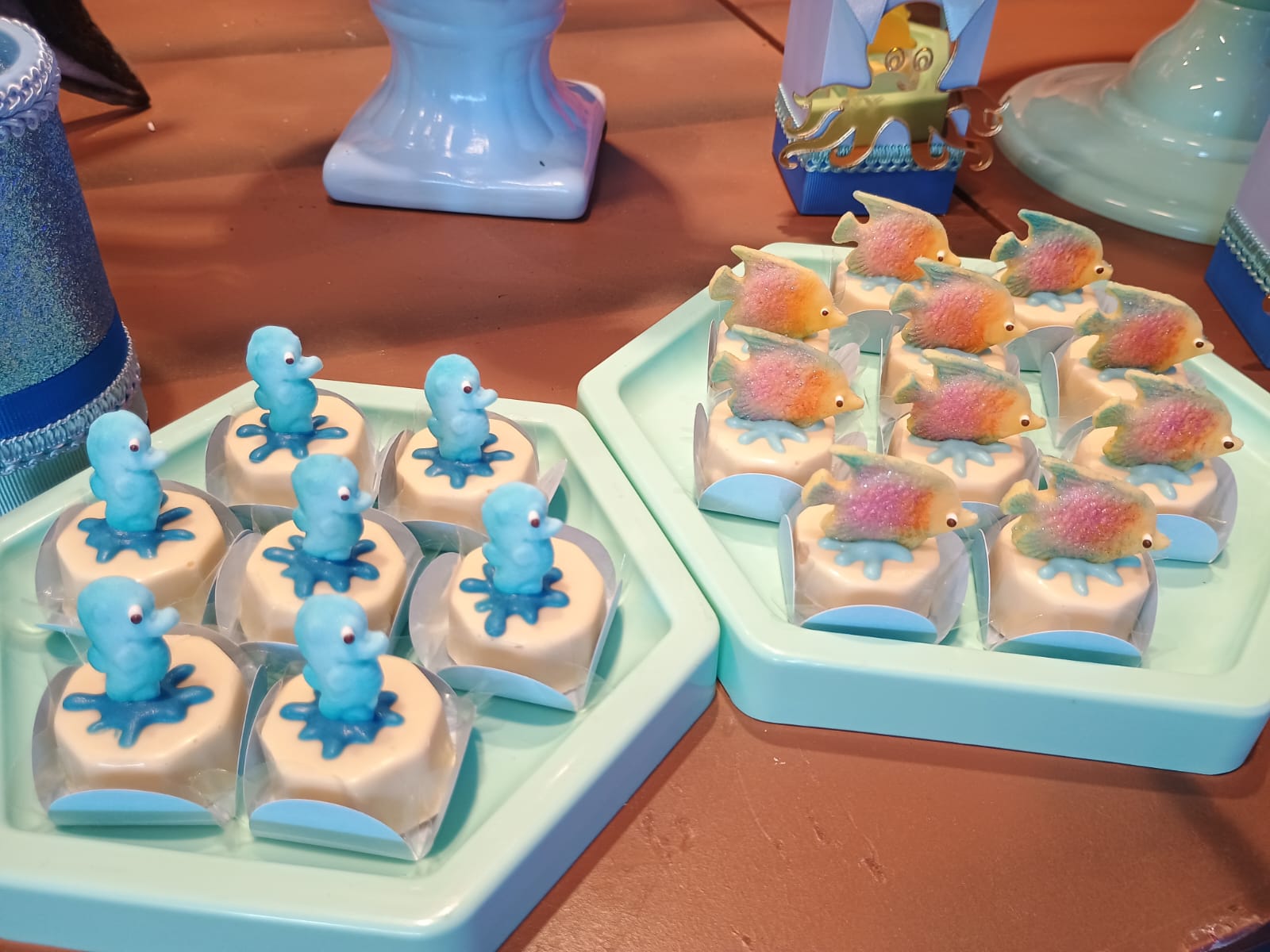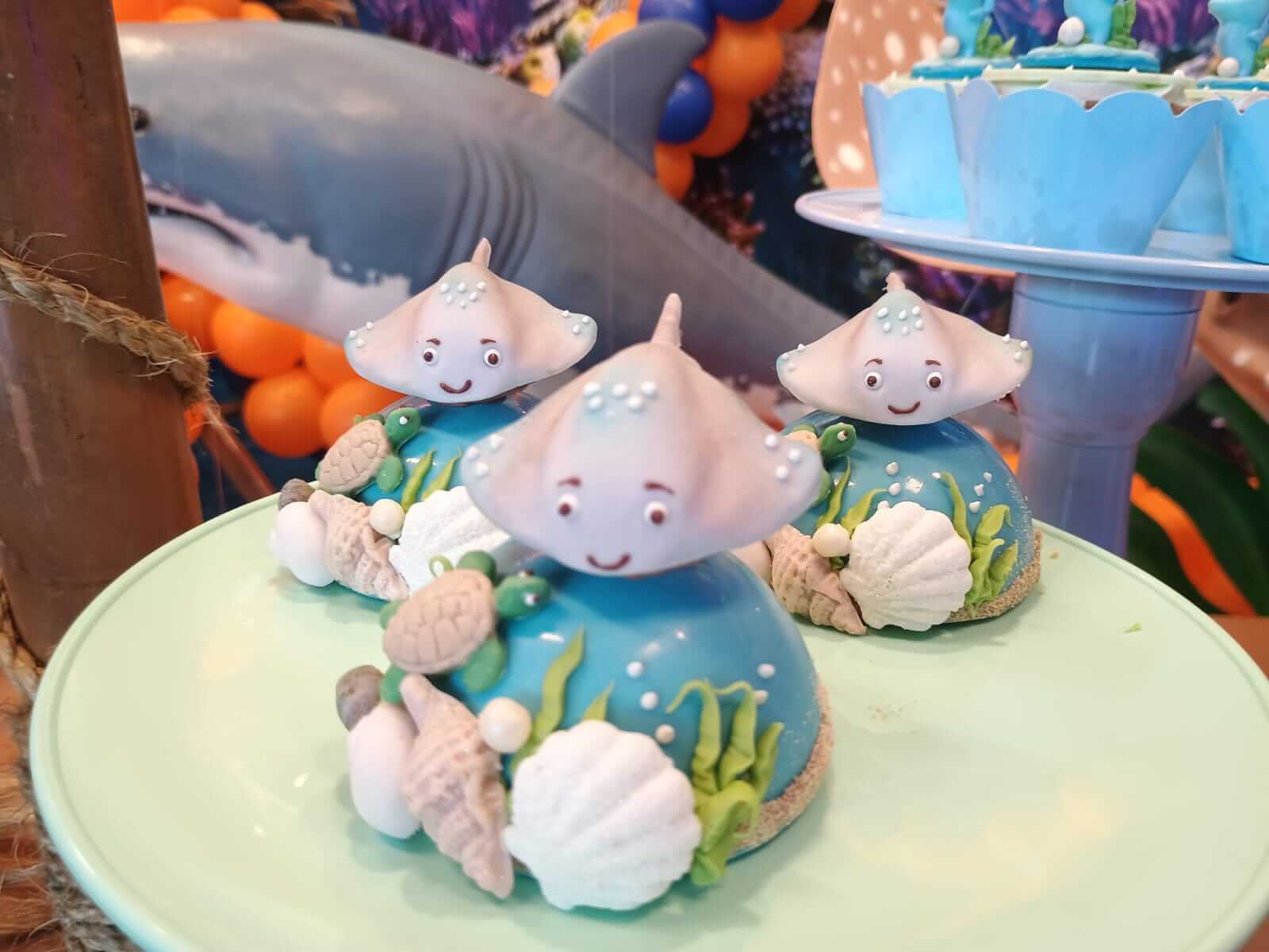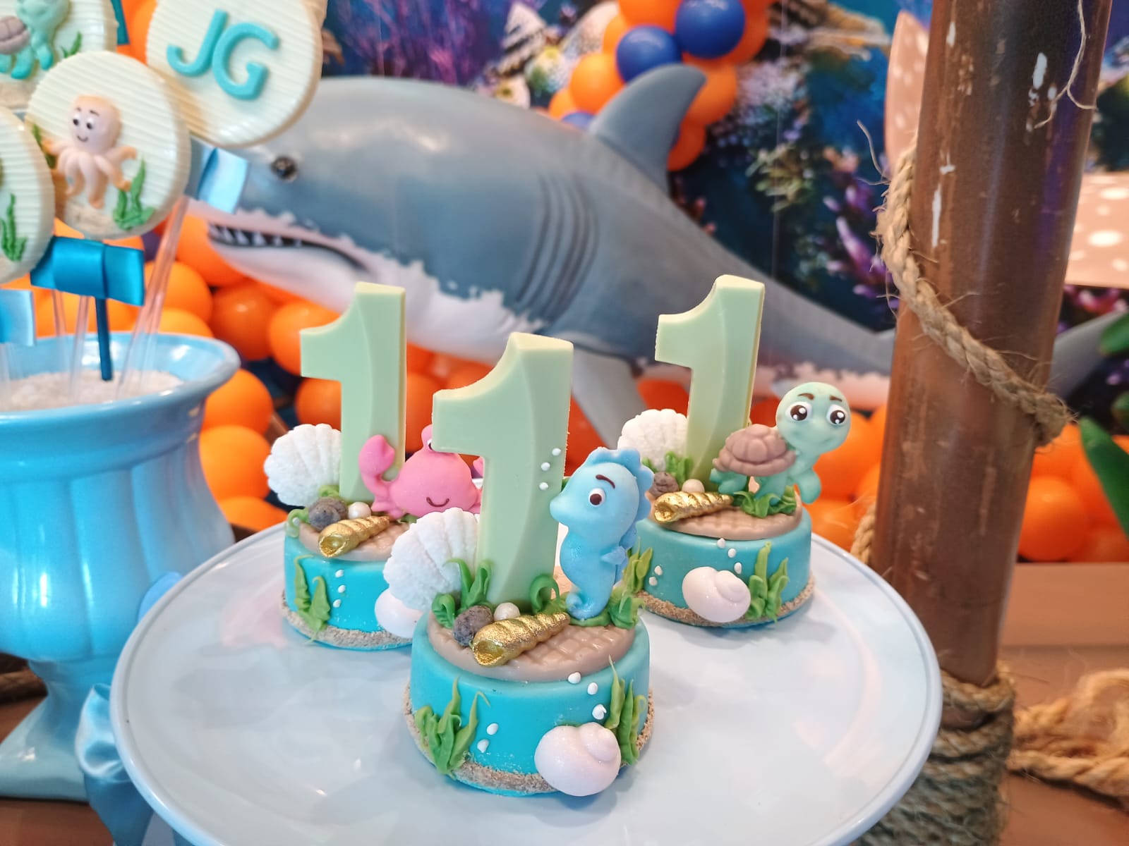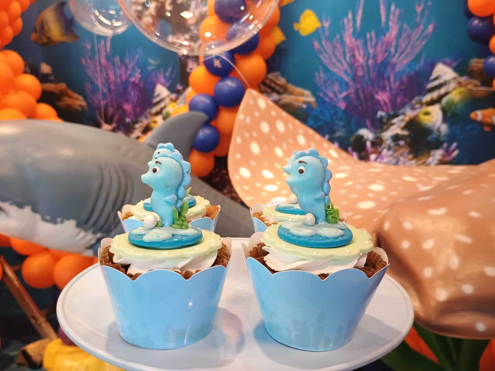 Com tons de azul, laranja e lilás, o espaço é perfeito para festas cheias de cor, alegria e fantasia, remetendo à magia do fundo do mar de forma lúdica e encantadora.