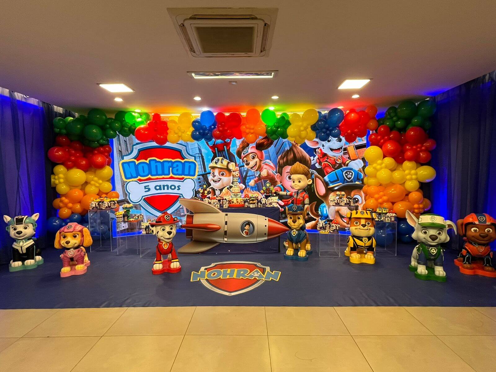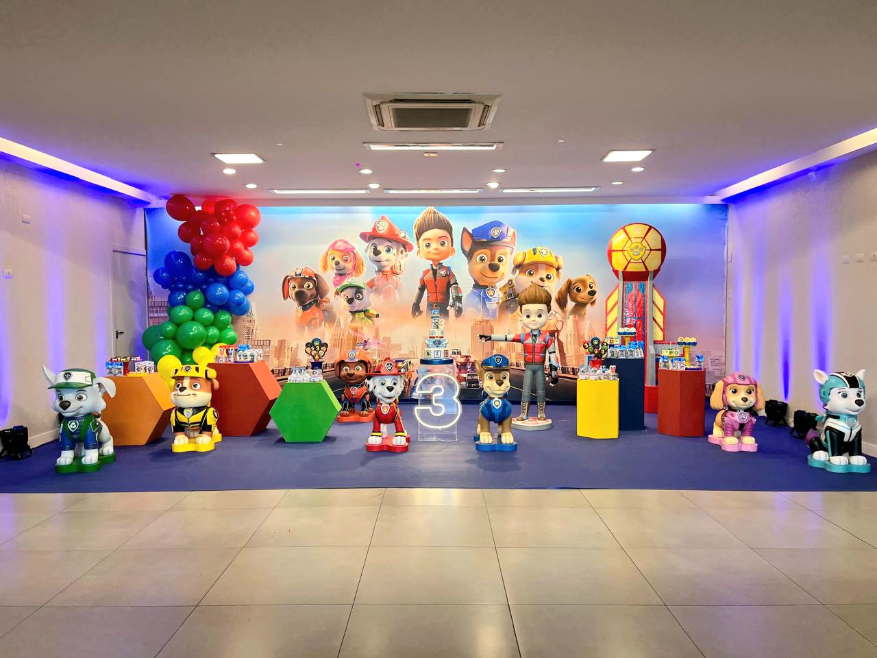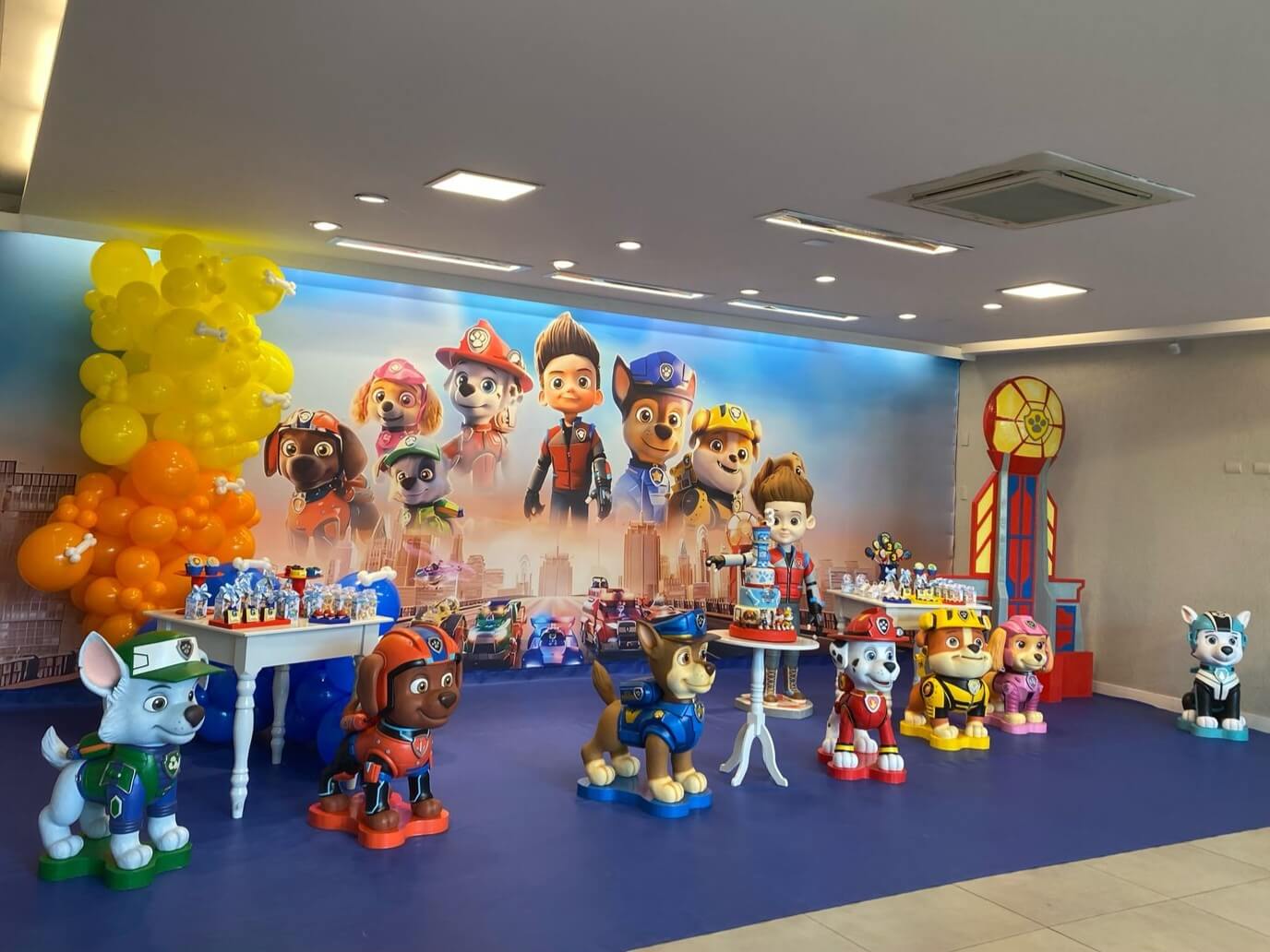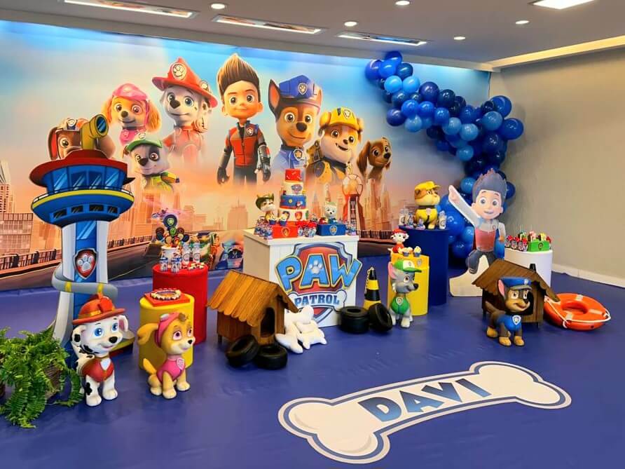 O tema Patrulha Canina traz a energia e o espírito de aventura da turma de filhotes mais querida. A decoração da Mundo Kids mistura cores vibrantes e elementos urbanos, criando um cenário divertido e cheio de ação para os pequenos heróis.