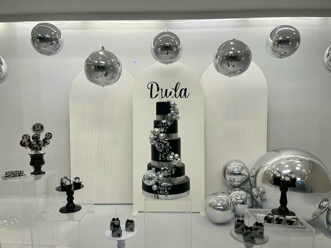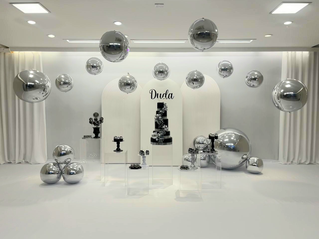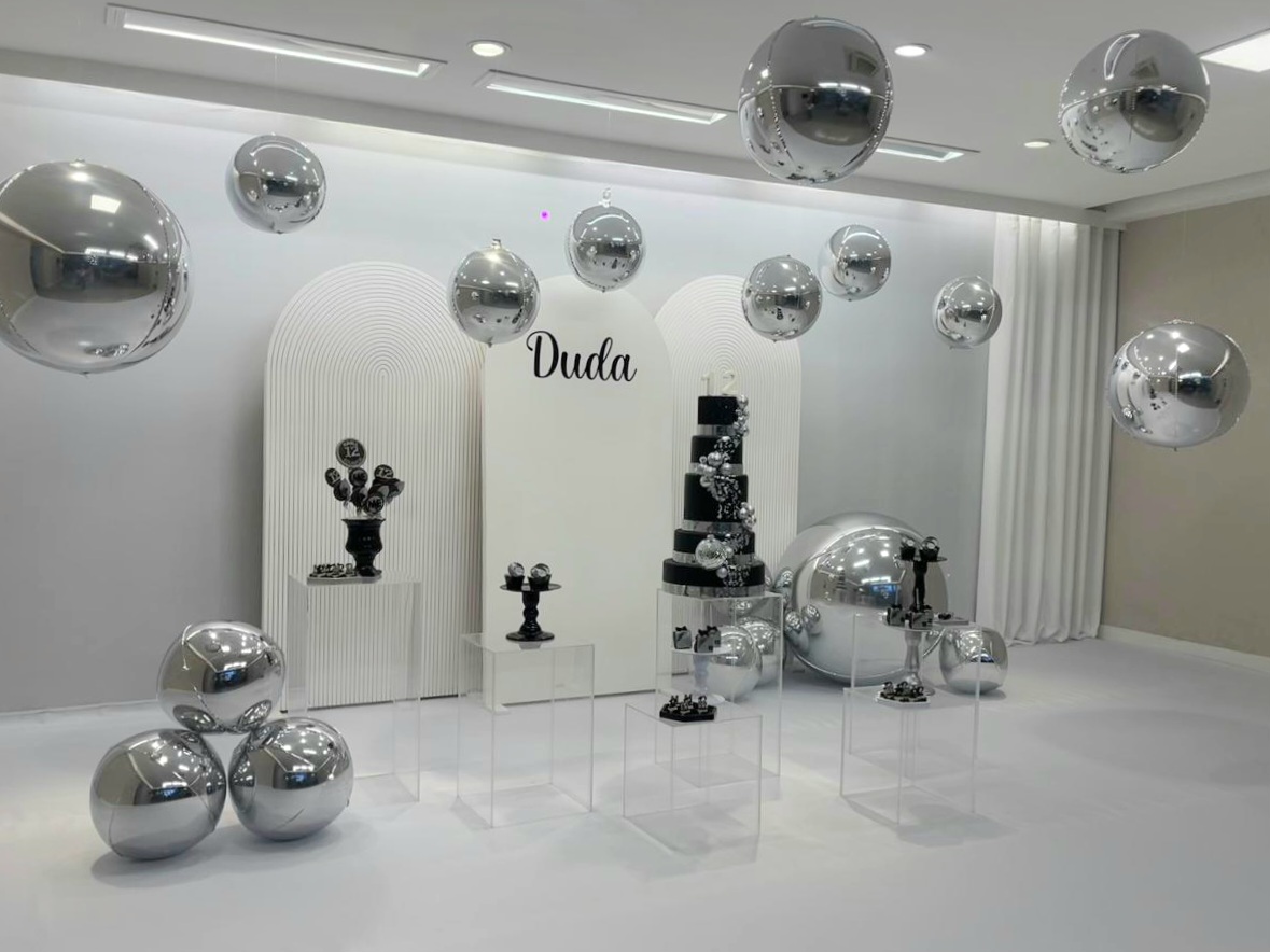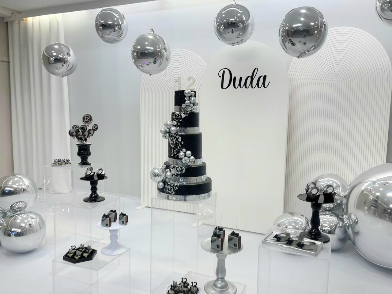 O tema Preto & Branco transforma a festa em um cenário contemporâneo e impactante, onde o contraste elegante cria uma atmosfera sofisticada, moderna e cheia de personalidade. A composição minimalista valoriza formas, volumes e luz, resultando em um ambiente marcante e atemporal.