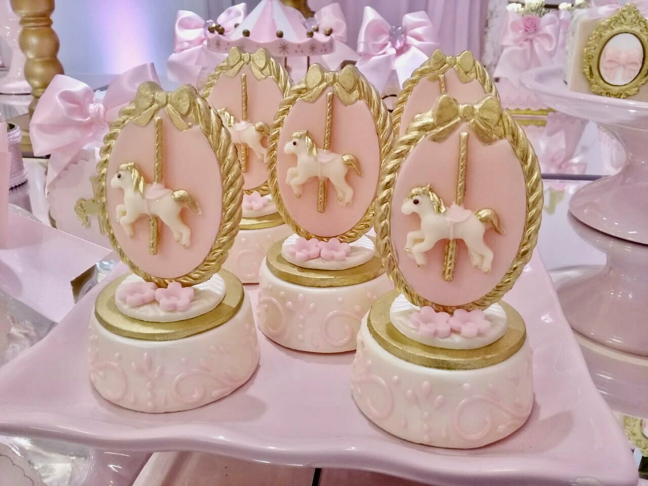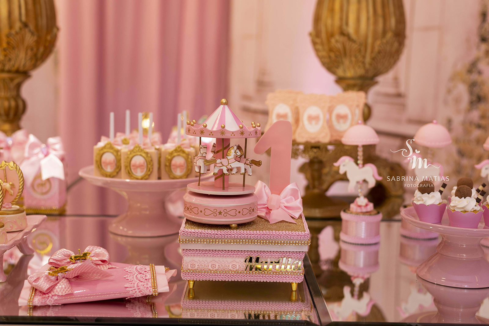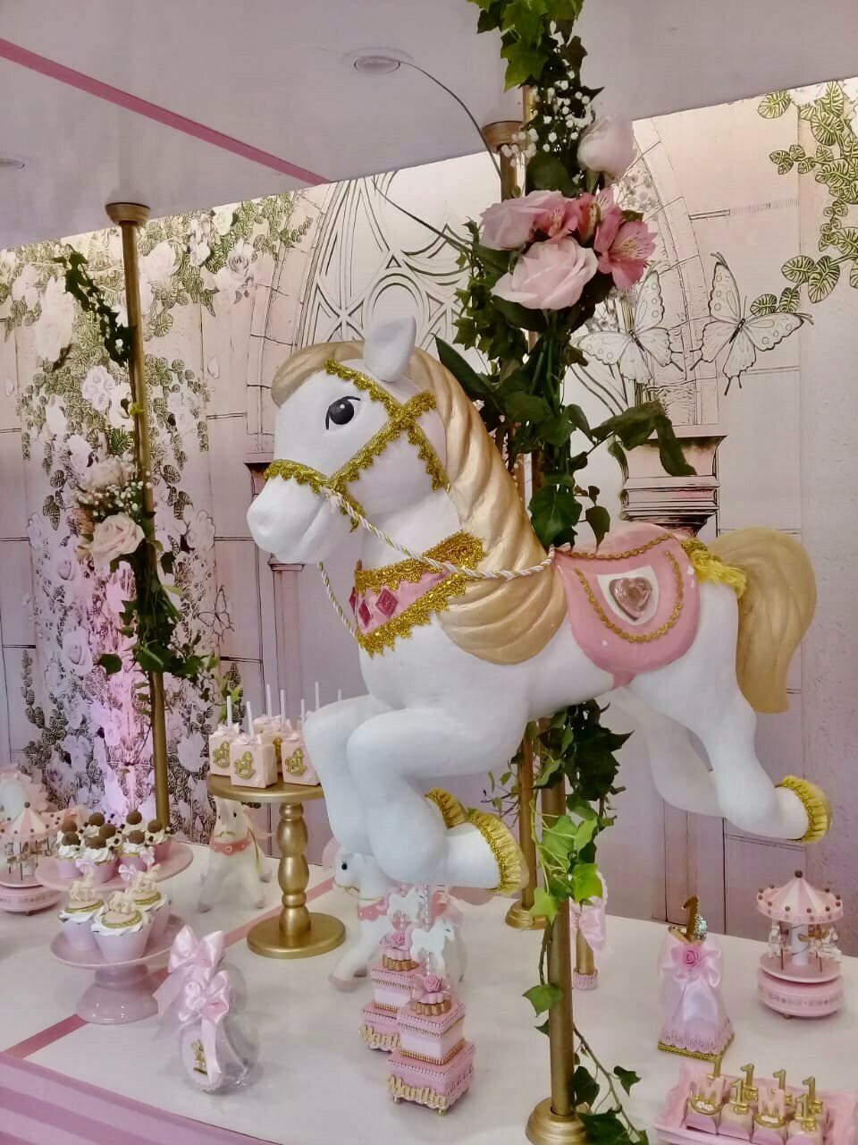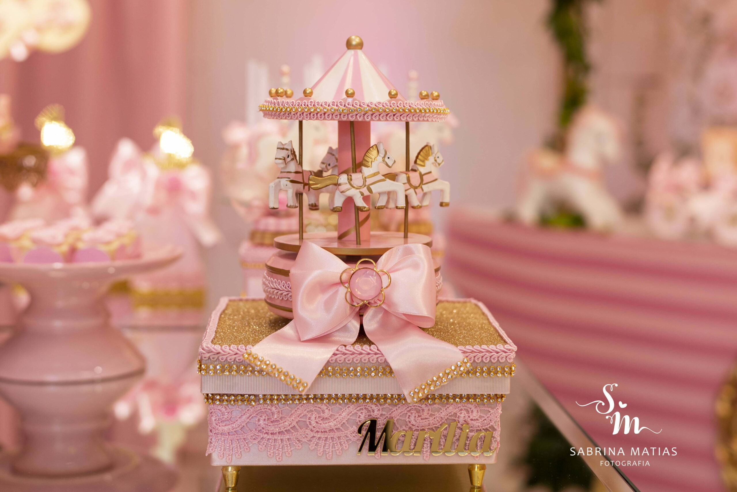 O tema Royal Carrossel é pura elegância e encanto, com tons de rosa, dourado e branco que remetem à delicadeza dos clássicos contos de fadas. Cada detalhe da decoração foi pensado para criar uma atmosfera mágica e sofisticada, com cavalinhos e ornamentos dourados que encantam crianças e adultos.