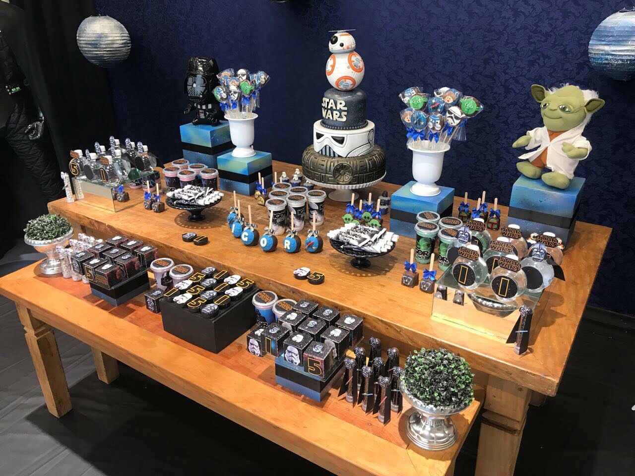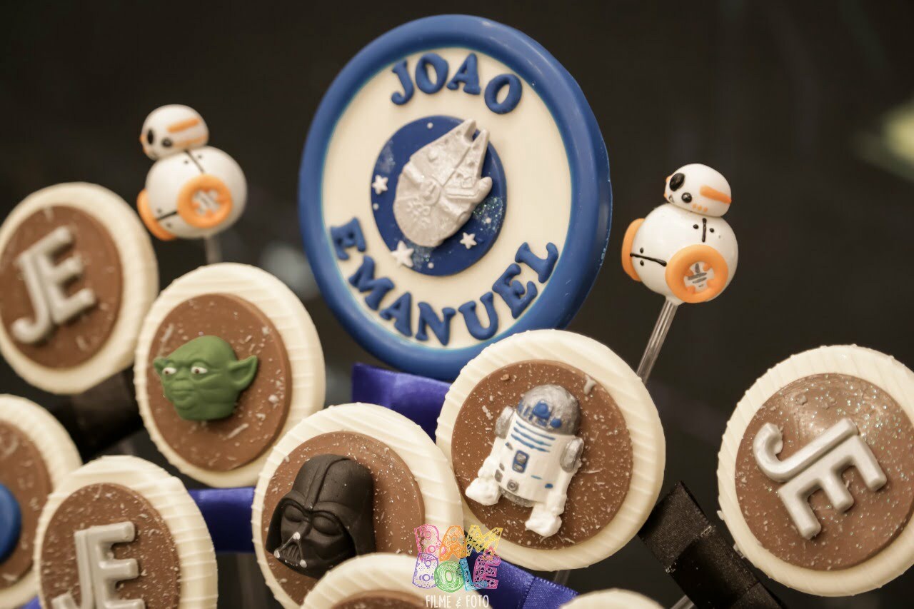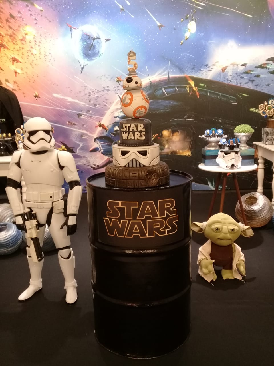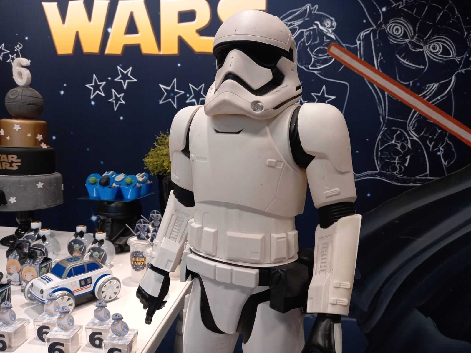 O tema Star Wars transforma a festa em uma verdadeira galáxia cheia de aventuras e efeitos impressionantes. Com cenário espacial, naves, planetas e os icônicos personagens da saga, cada detalhe convida os convidados a embarcar nessa jornada pelo universo.