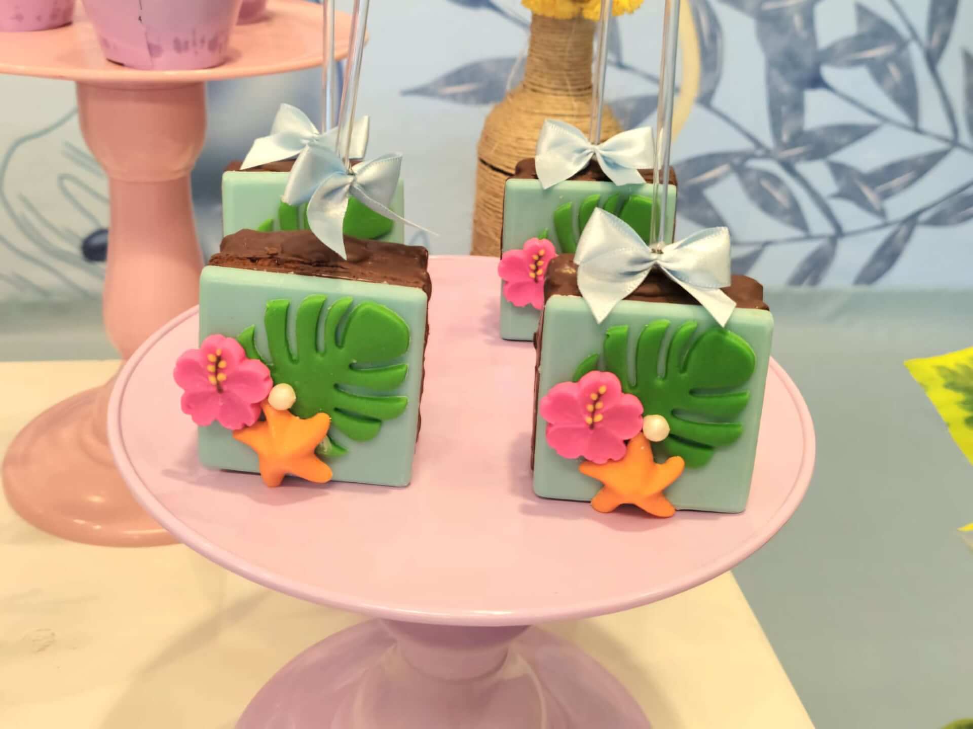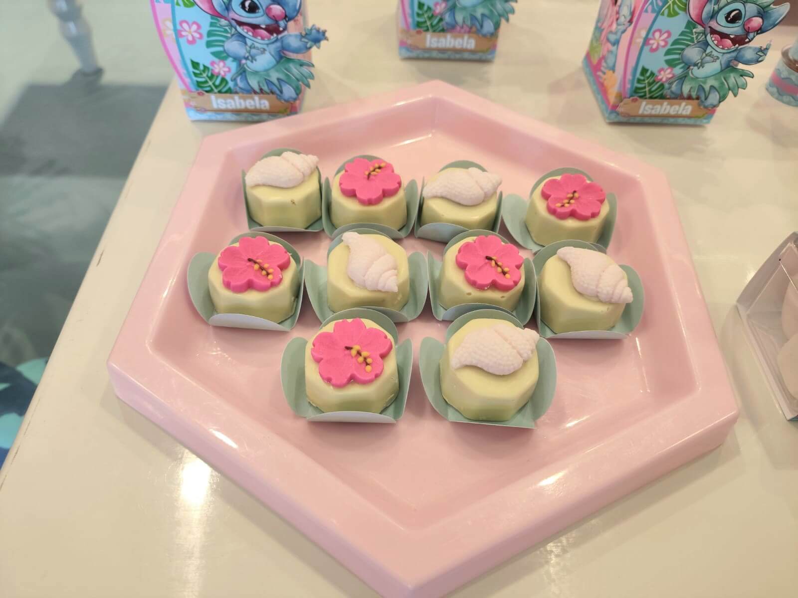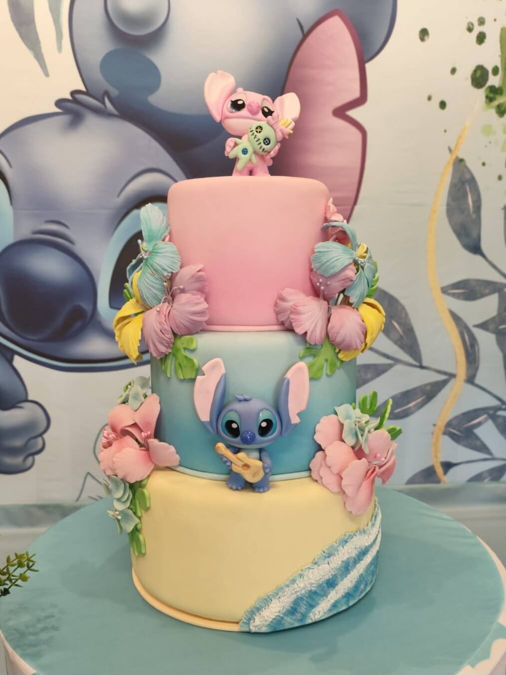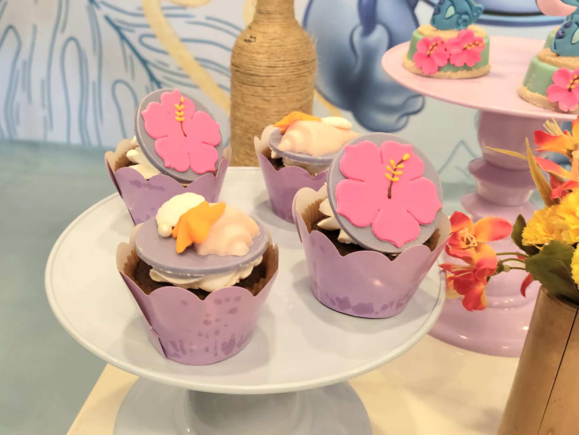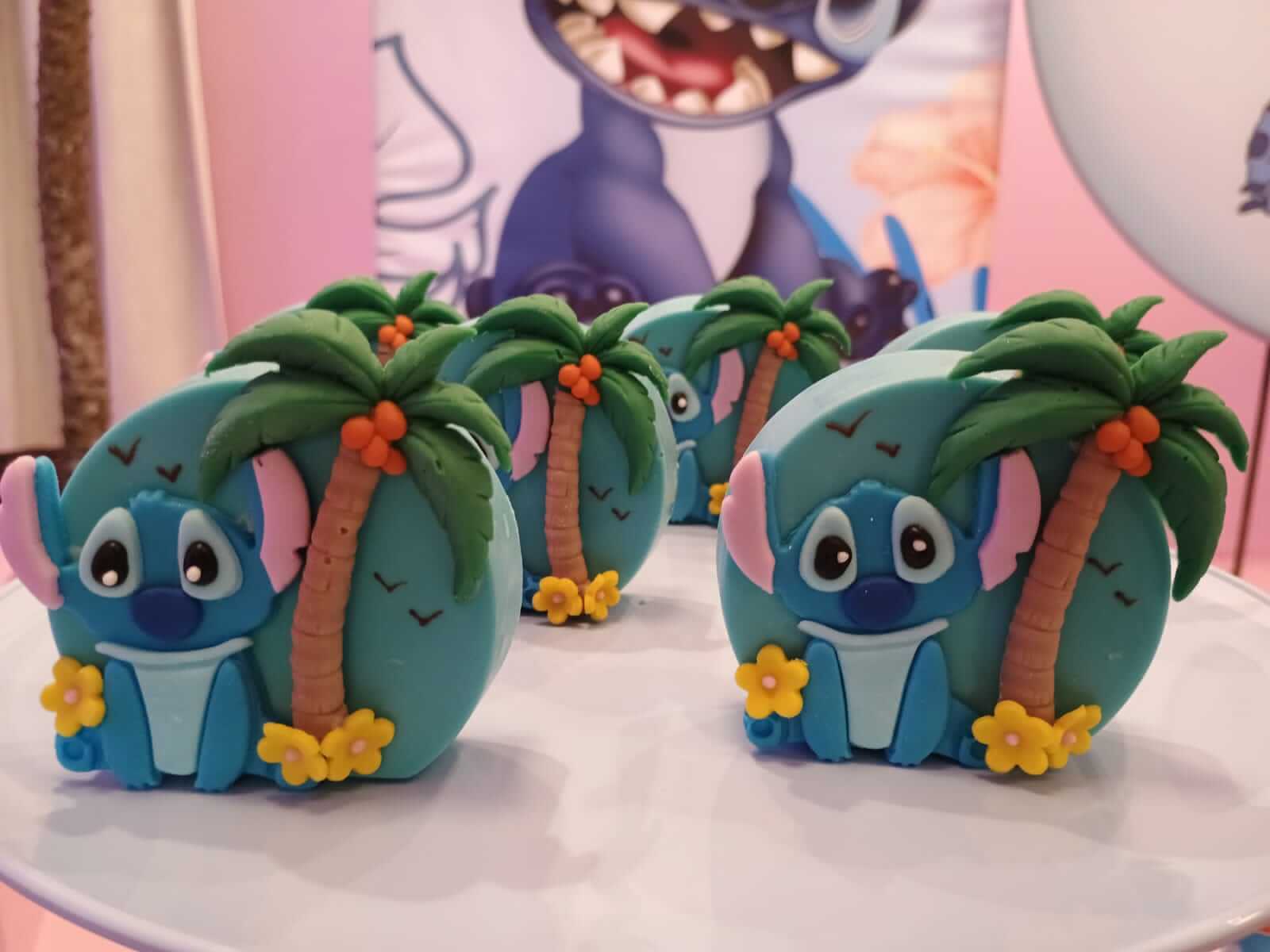 O tema Lilo e Stitch traz o clima tropical do Havaí para a festa, com uma paleta suave em tons de azul, lilás e rosa que encanta à primeira vista. O cenário mistura pranchas de surfe, palmeiras e muitos elementos do oceano, criando um ambiente divertido e acolhedor.