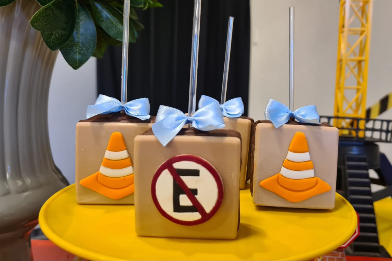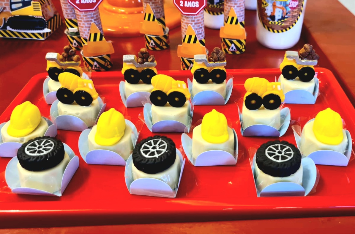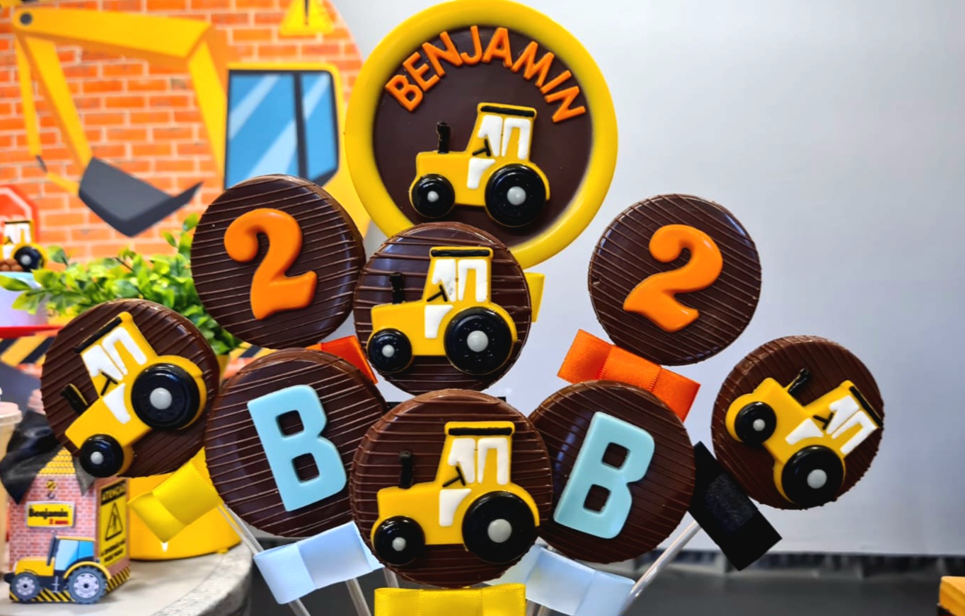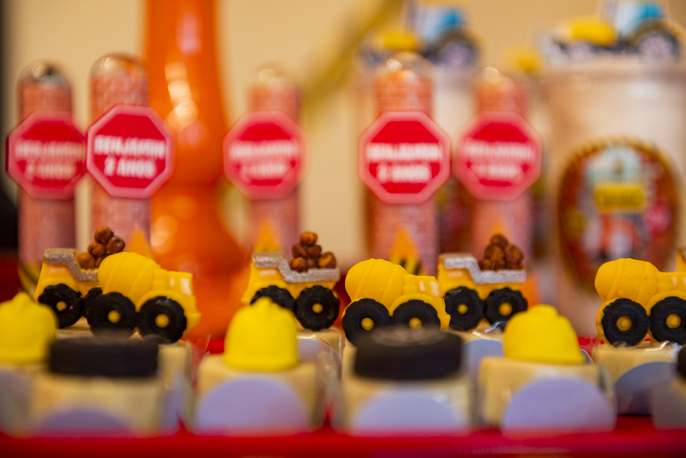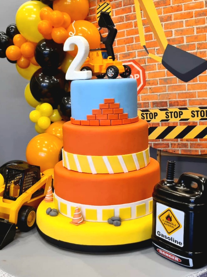 O tema Trator é uma verdadeira festa em meio à construção, perfeita para pequenos que adoram máquinas e aventuras! A decoração destaca tons de amarelo, preto e laranja, com cones, capacetes e faixas de segurança que transformam o ambiente em um divertido canteiro de obras. O grande trator em tamanho real rouba a cena, trazendo realismo e encanto à composição.