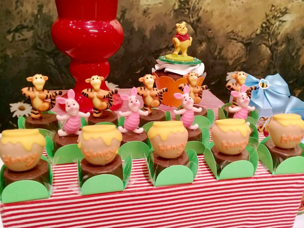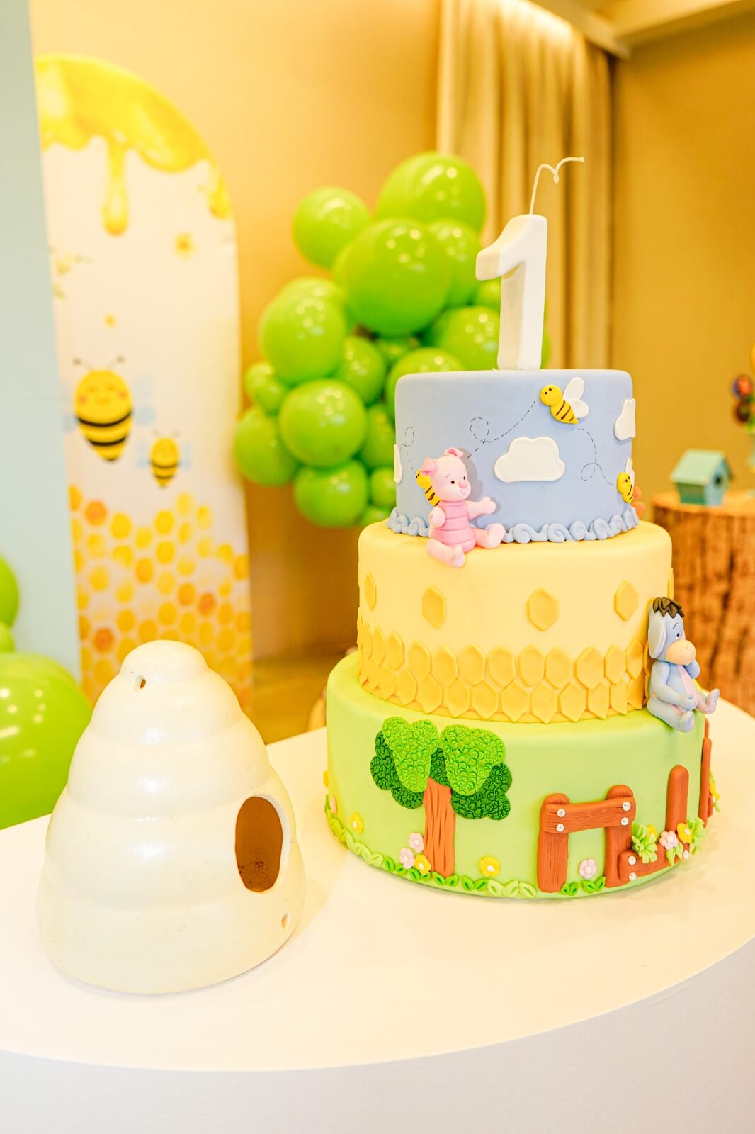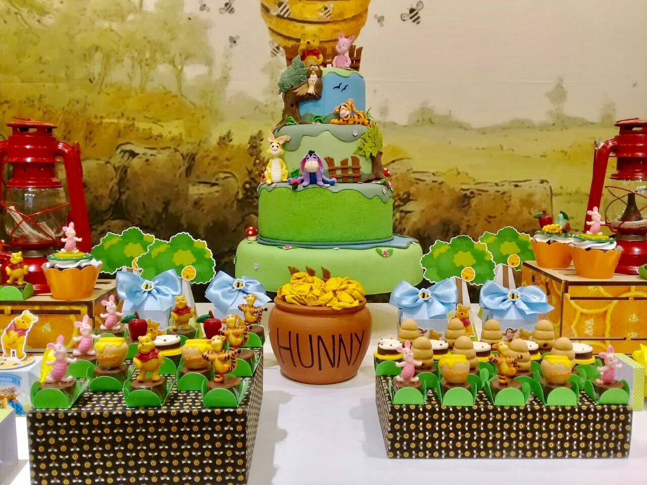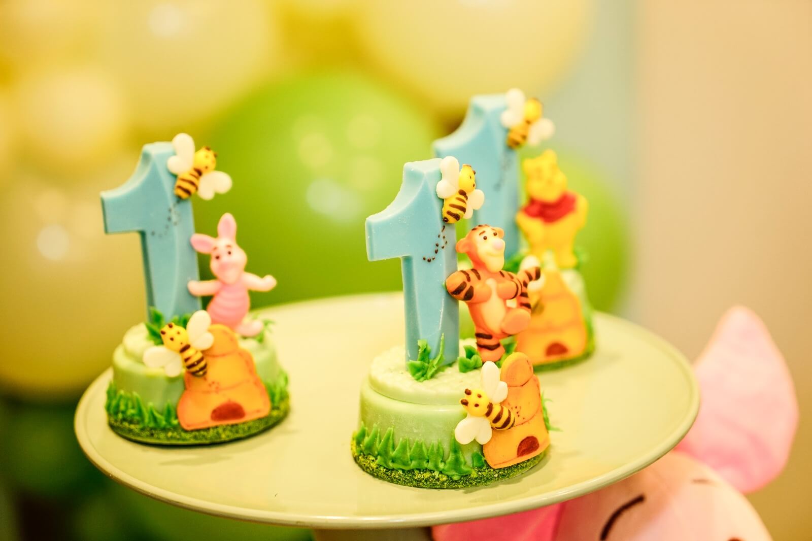 O tema Ursinho Pooh traz toda a doçura do Bosque dos Cem Acres para a festa, criando um cenário leve, acolhedor e cheio de encantamento. A decoração combina elementos como colmeias, árvores, cogumelos, flores e os personagens mais queridos — Pooh, Tigrão, Leitão e Ió — em uma composição que transmite a magia das histórias clássicas.