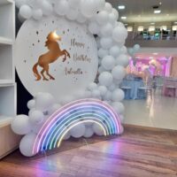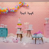 Decoração Personalizada: Equipe de Party Designers & Event Planners do Mundo Kids. Tema: Unicórnios. Várias Montagens.