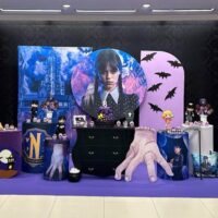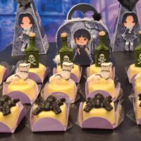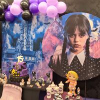 Decoração Personalizada: Equipe de Party Designers do Mundo Kids. Tema: Wandinha Família Addams. Várias montagens.
